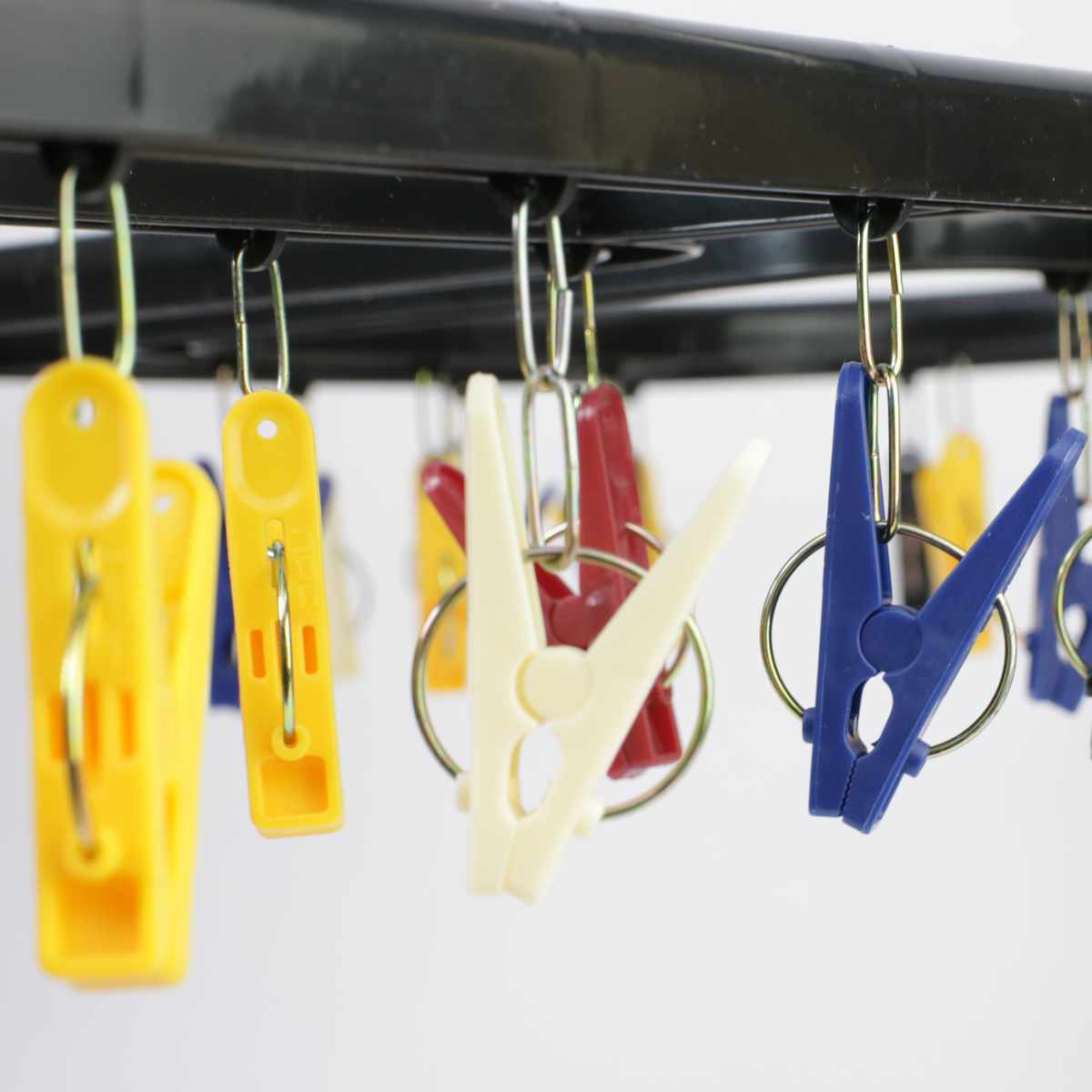 関連キーワード:洗濯用品 ランドリーグッズ ランドリー用品 小物干し タオル干し かくし干し 下着 靴下 家事 便利 軽い 軽量 丈夫 チェーン 洗濯ばさみ ピンチ 取替え可能 取り外せる 取替え 48個 カラフル ブラック 折り畳み おりたためる 谷折り式 省スペース 絡みにくい スムーズ 時短 カモイ てすり L字 部屋干し 室内干し 外干し 屋外 ベランダ バルコニー 新生活 一人暮らし ひとり暮らし 下宿 学生 デザイン性 お洒落 オシャレ 生活