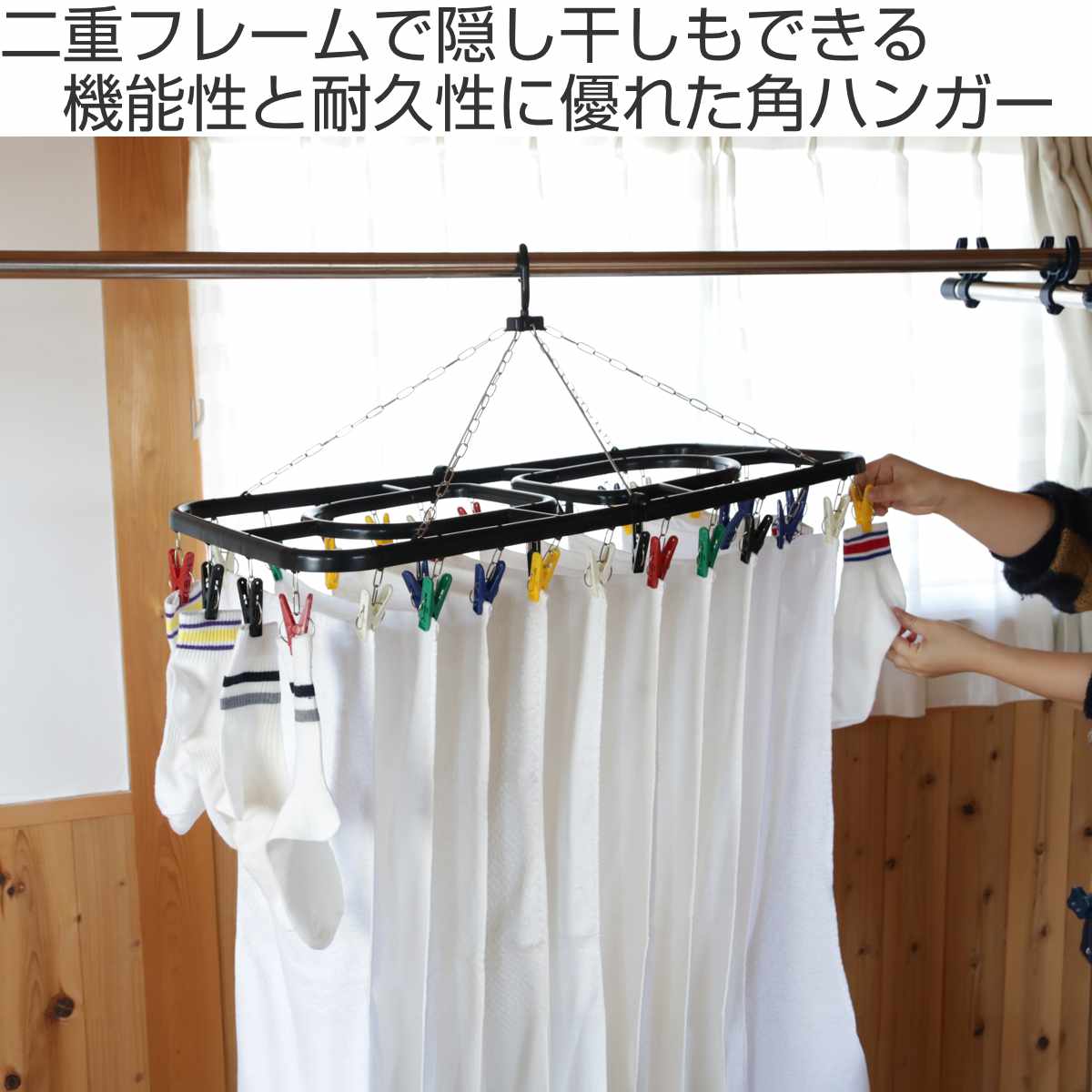 洗濯ハンガー Kogure 角ハンガー ジャンボ ピンチ36個付 ( 洗濯 ハンガー ピンチハンガー 折りたたみ 隠し干し 物干しハンガー 洗濯バサミ 36 カラフルピンチ 自立フック 鴨居 手すり コンパクト 収納 )