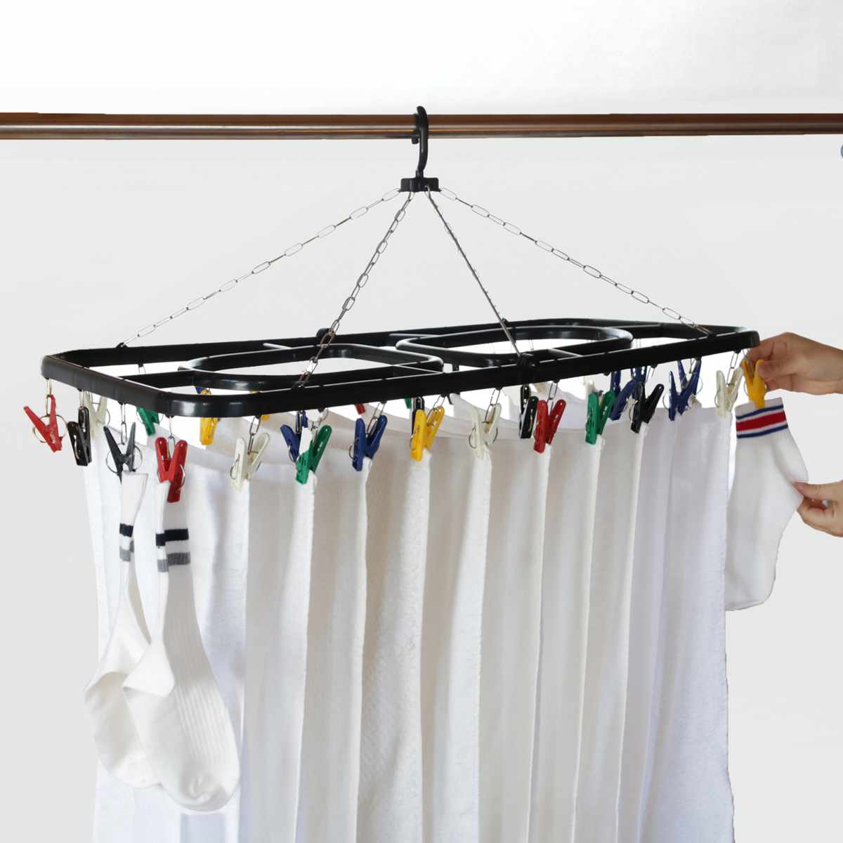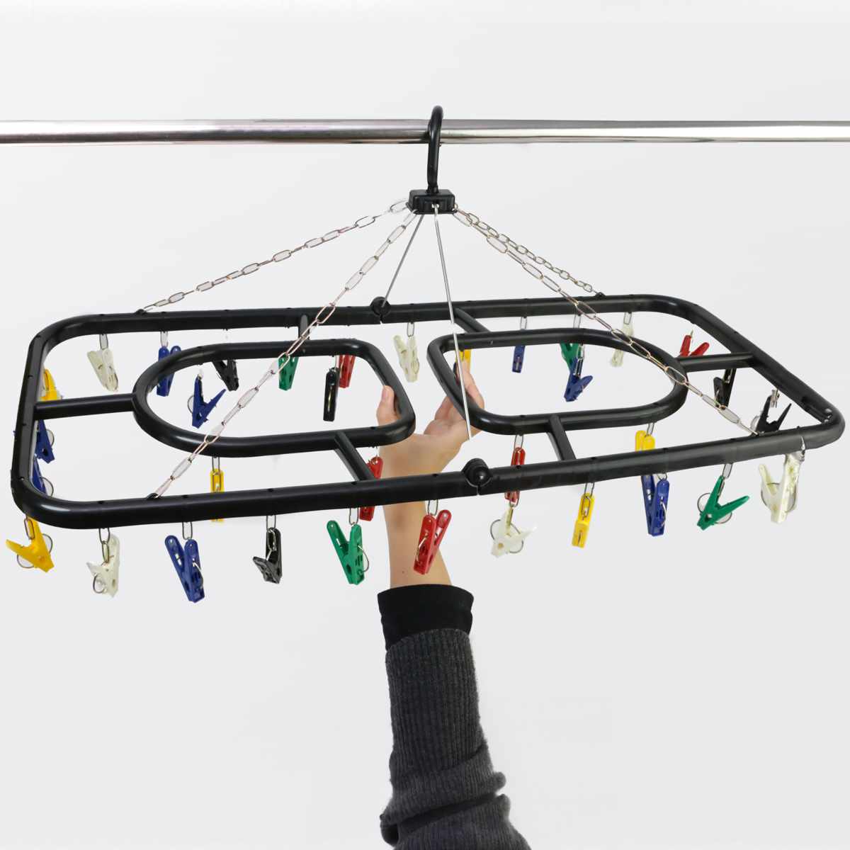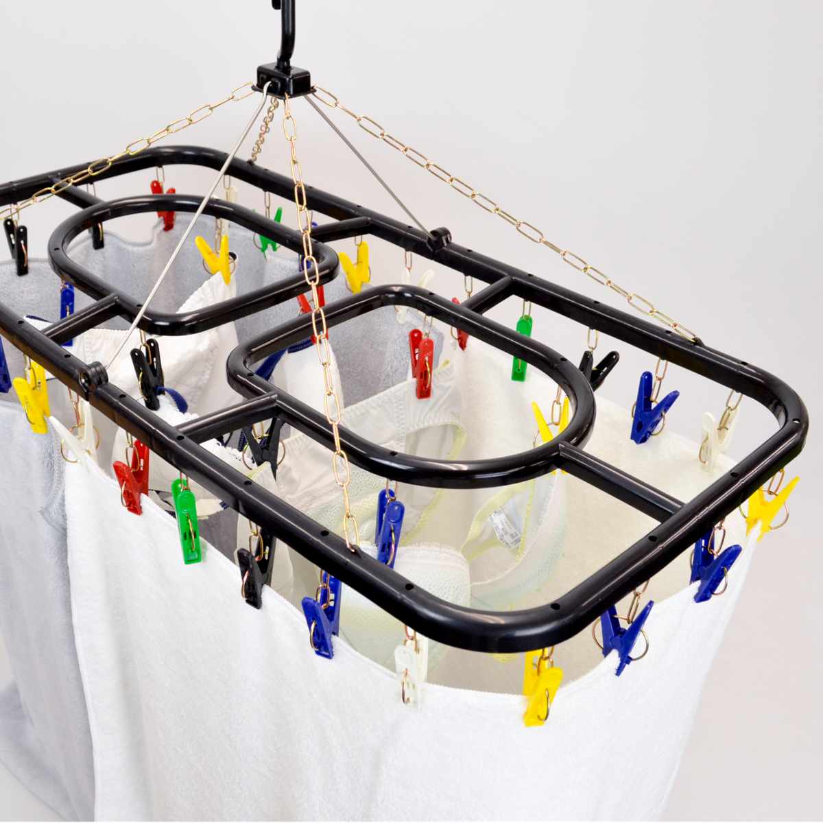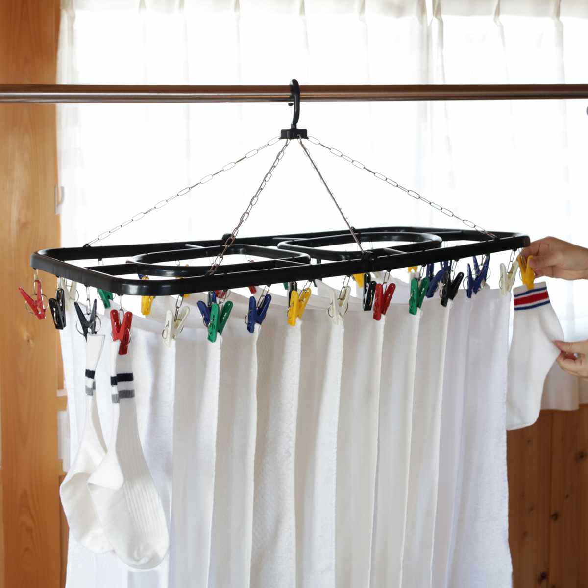関連キーワード:洗濯用品 ランドリーグッズ ランドリー用品 小物干し タオル干し かくし干し 下着 靴下 家事 便利 軽い 軽量 丈夫 チェーン 洗濯ばさみ ピンチ 取替え可能 取り外せる 取替え 36個 カラフル ブラック 折り畳み おりたためる 谷折り式 省スペース 絡みにくい スムーズ 時短 カモイ てすり L字 部屋干し 室内干し 外干し 屋外 ベランダ バルコニー 新生活 一人暮らし ひとり暮らし 下宿 学生 デザイン性 お洒落 オシャレ 生活