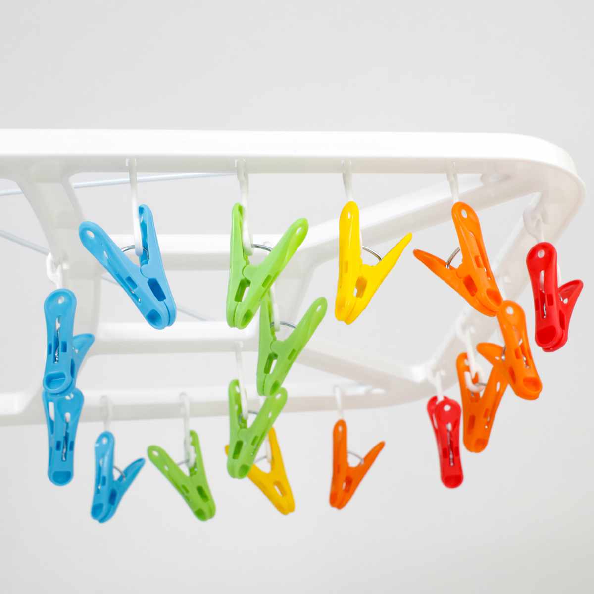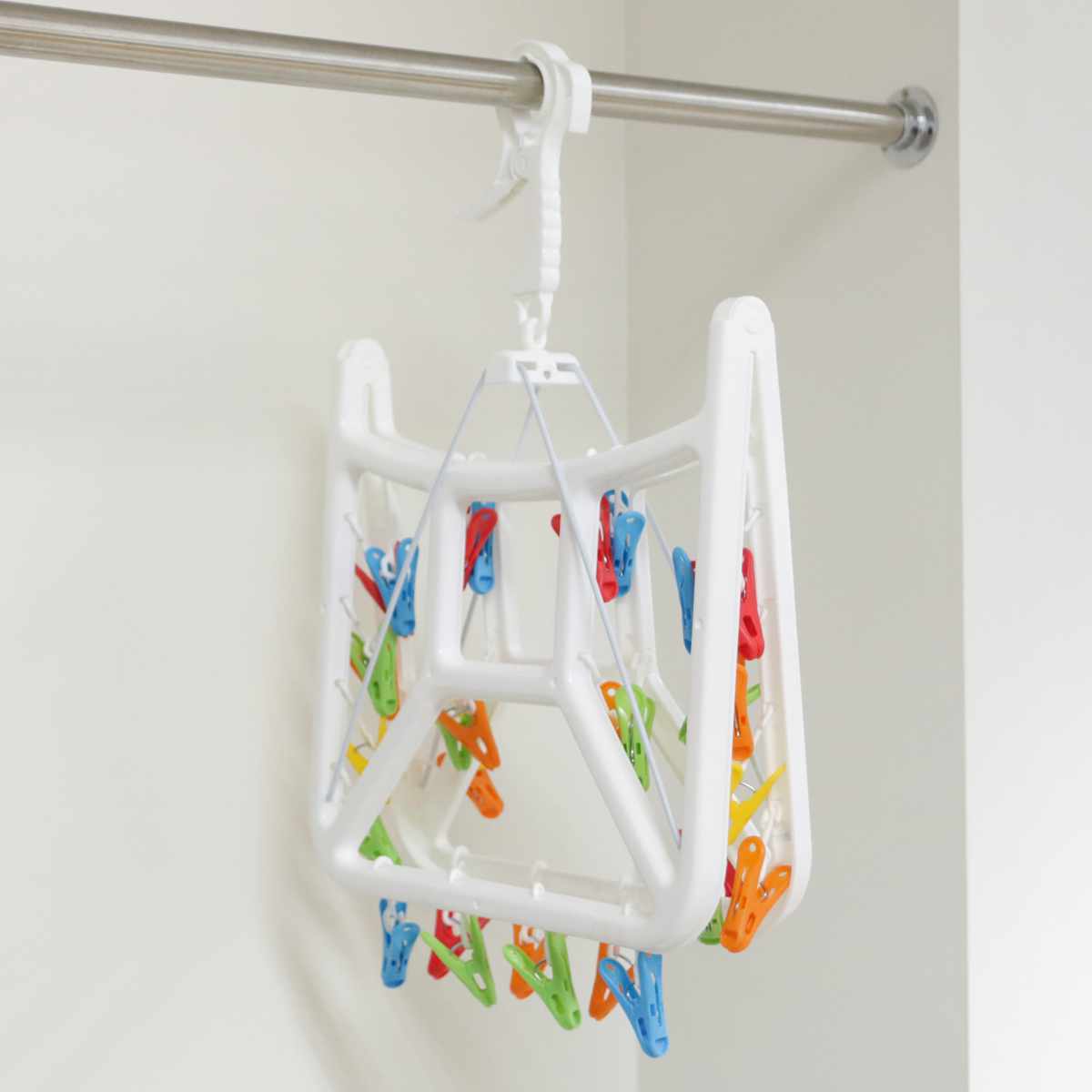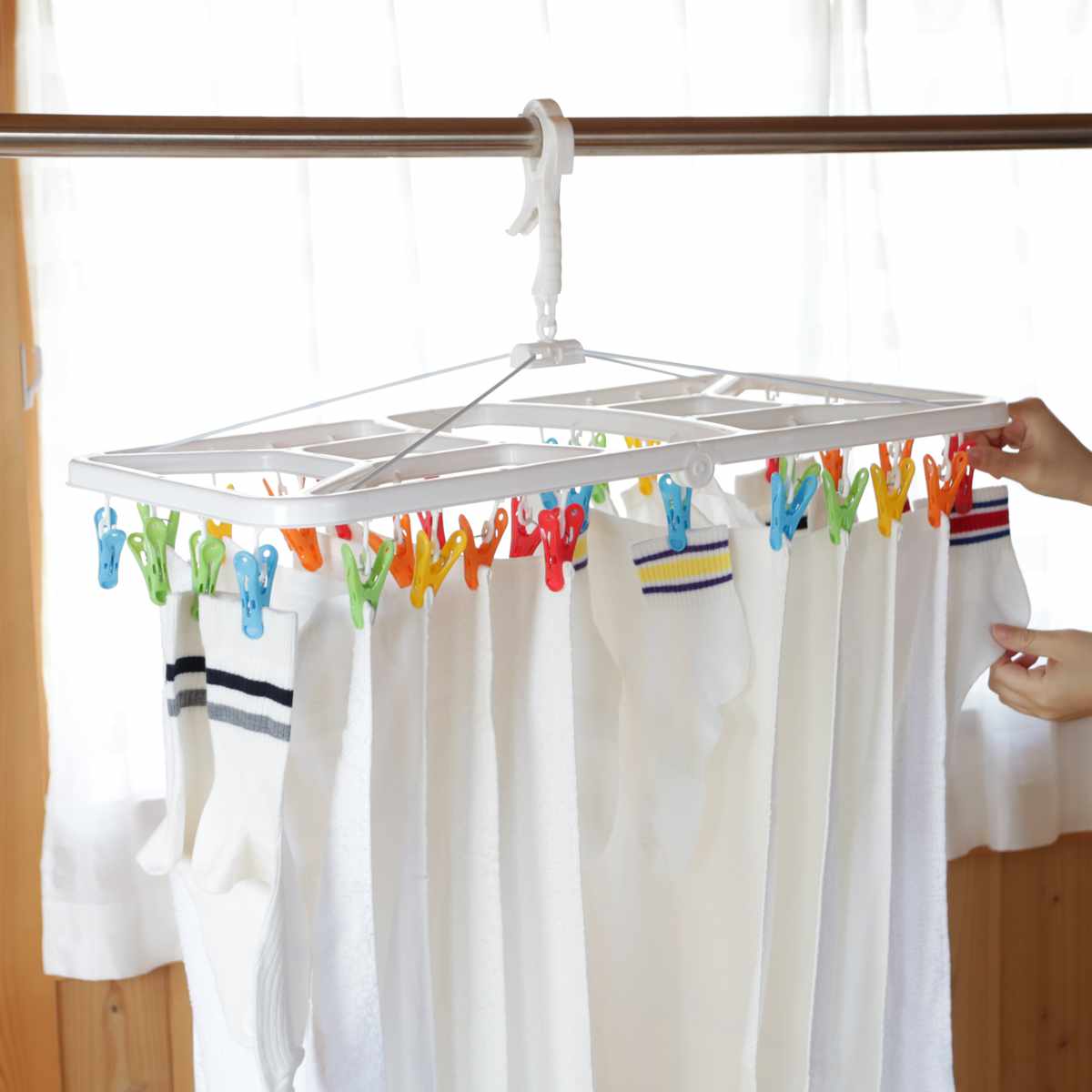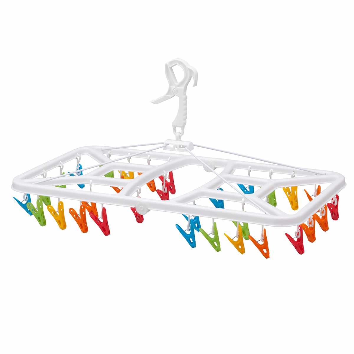 毎日のお洗濯が楽しくなるカラフルピンチの角ハンガー 32ピンチ