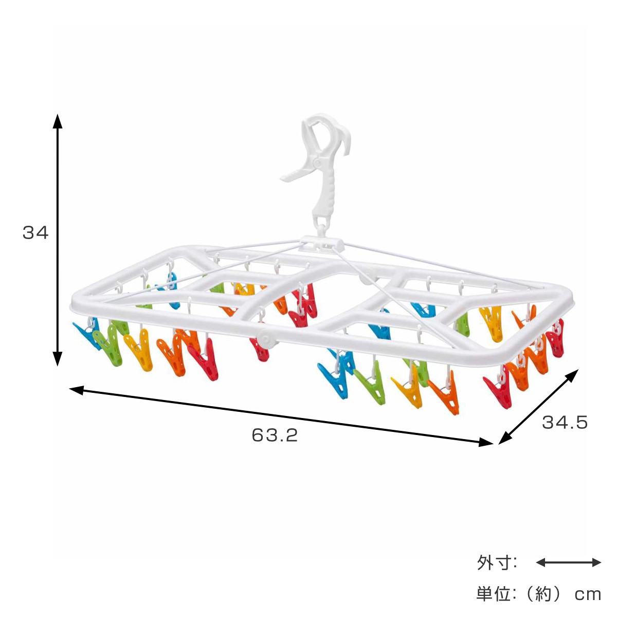 洗濯ハンガー 角ハンガー 折りたたみ Kogure カラフル ランドリーハンガー ピンチ32個付 ( 洗濯 ハンガー ピンチハンガー キャッチフック式 カラフルピンチ 物干しハンガー 洗濯バサミ 32 鴨居フック コンパクト 収納 )