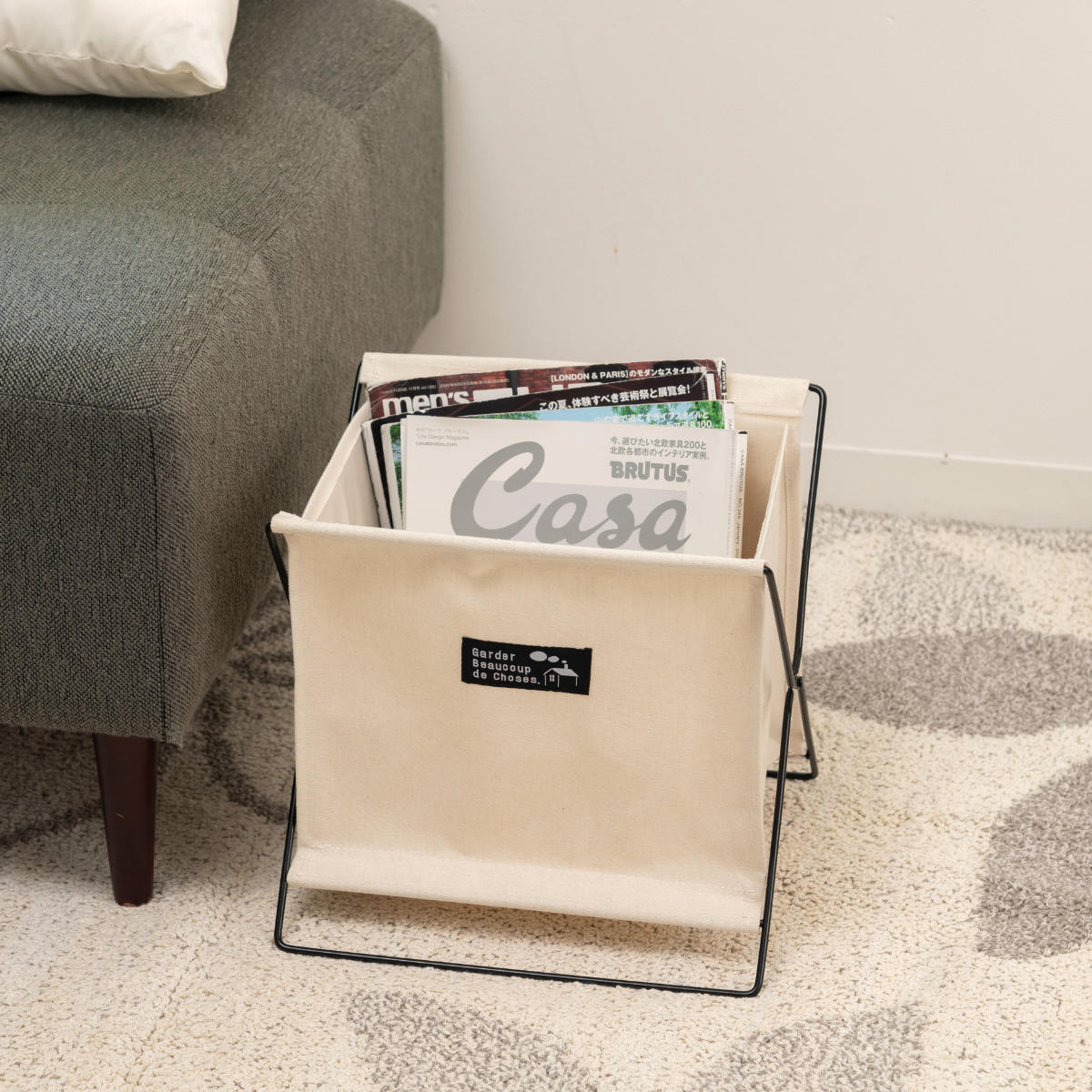 幅広いテイストのインテリアに馴染む、シンプルな色とデザインのマガジンラックです。散らかりやすい雑誌や小物類をさっと放り込めば、お部屋がスッキリ片付きます。