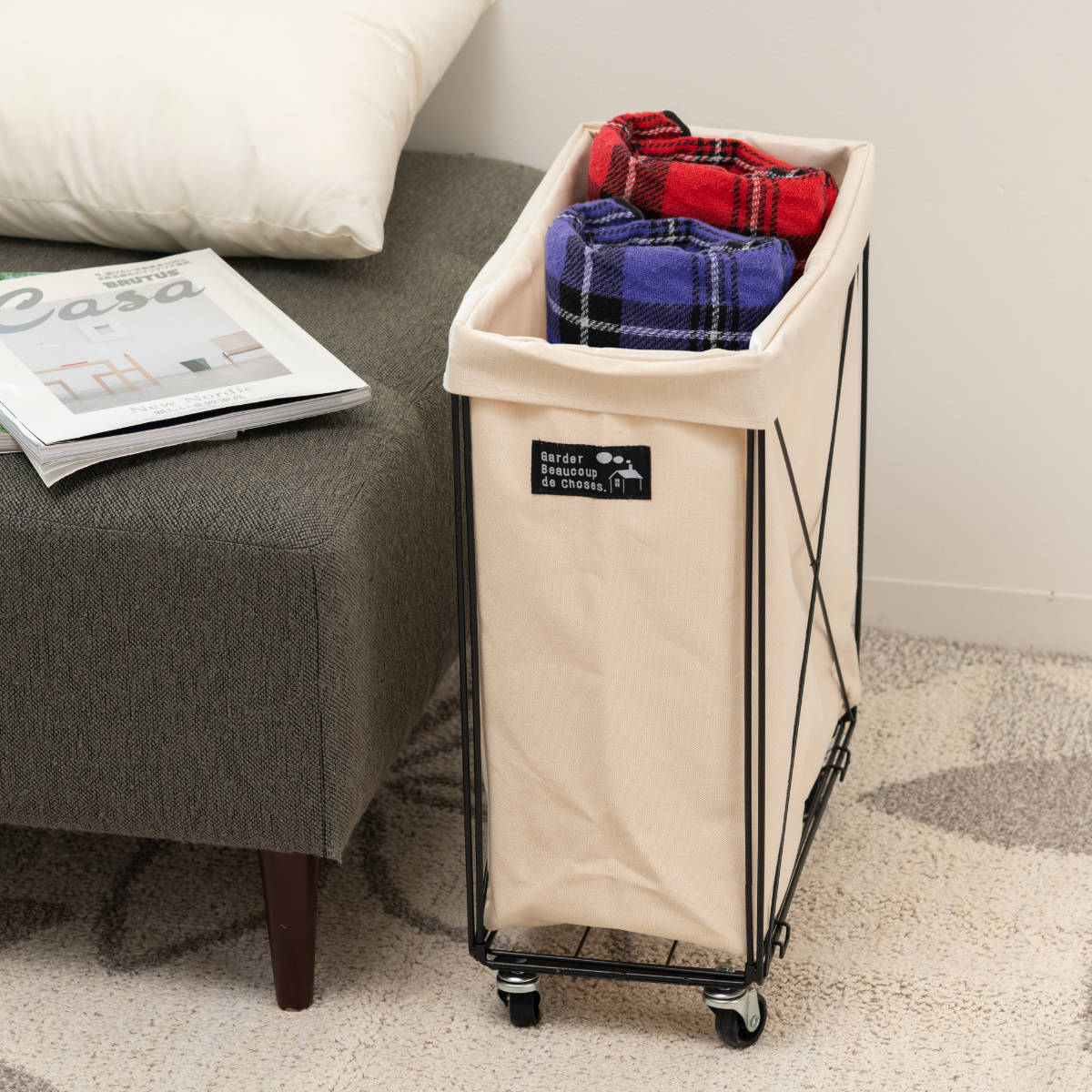 幅広いテイストのインテリアに馴染む、シンプルな色とデザインのスリムカートです。散らかりやすい雑誌や小物類をさっと放り込めば、お部屋がスッキリ片付きます。