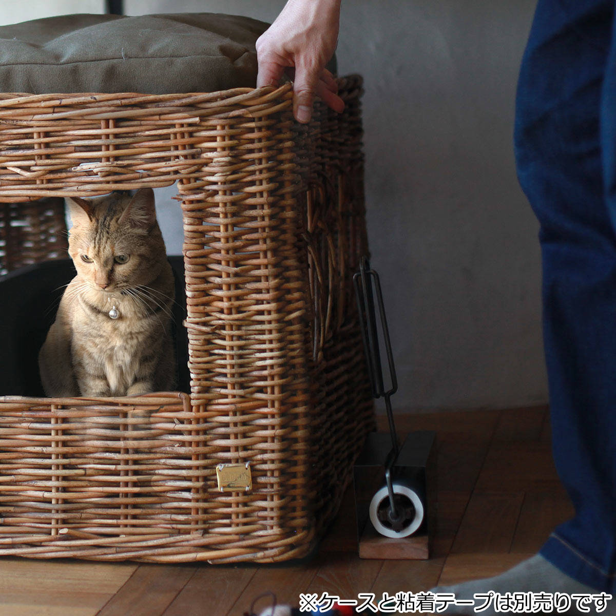 クリーナーホルダーとしては珍しいウッドとアイアン素材を組み合わせて作られたロールクリーナーホルダーです。サッと取り出して、ネコちゃんの抜け毛のお掃除ができます。