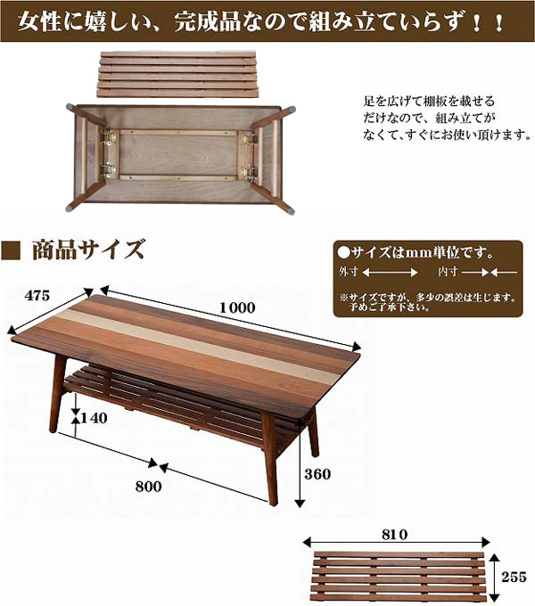 センターテーブル 角型 YOGEAR(ヨギア) 天然木製 幅100cm ( 折りたたみテーブル ローテーブル フォールディングテーブル 折りたたみ YOGEARヨギア リビングテーブル デスク ナチュラル 棚付き 完成品 )