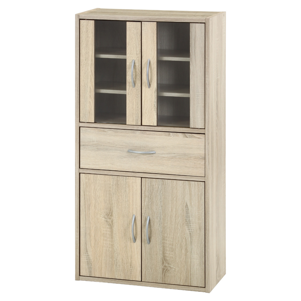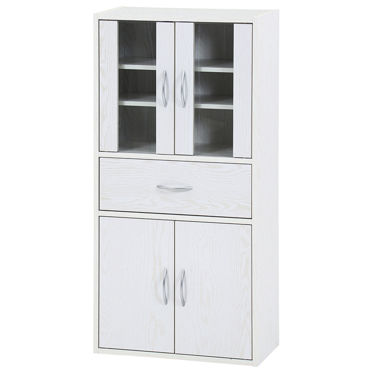 食器棚 ミドルキッチンキャビネット 幅60cm 木目調 ( カップボード キッチンボード 収納 棚 ガラス扉 食器収納 可動棚 引き出し 省スペース コンパクト シンプル ) 【ホワイト】