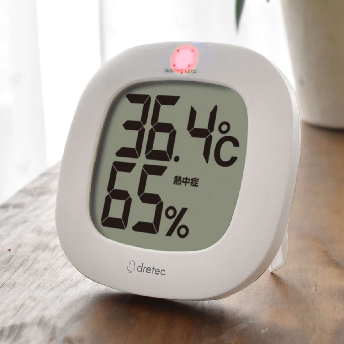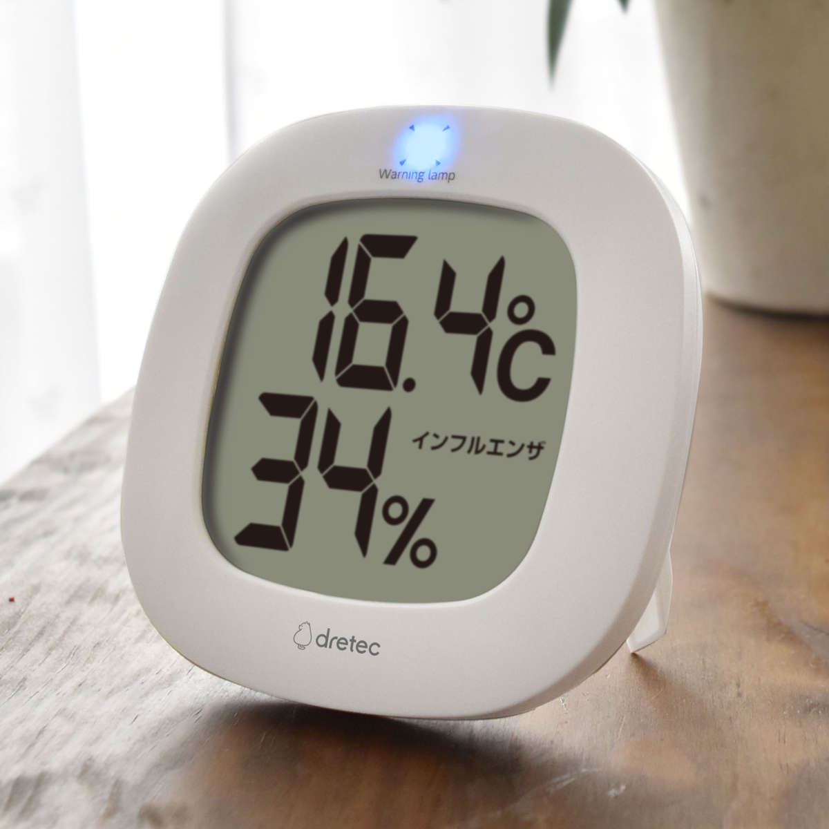 ●熱中症・インフルエンザの危険度目安をランプでお知らせする温湿度計です。