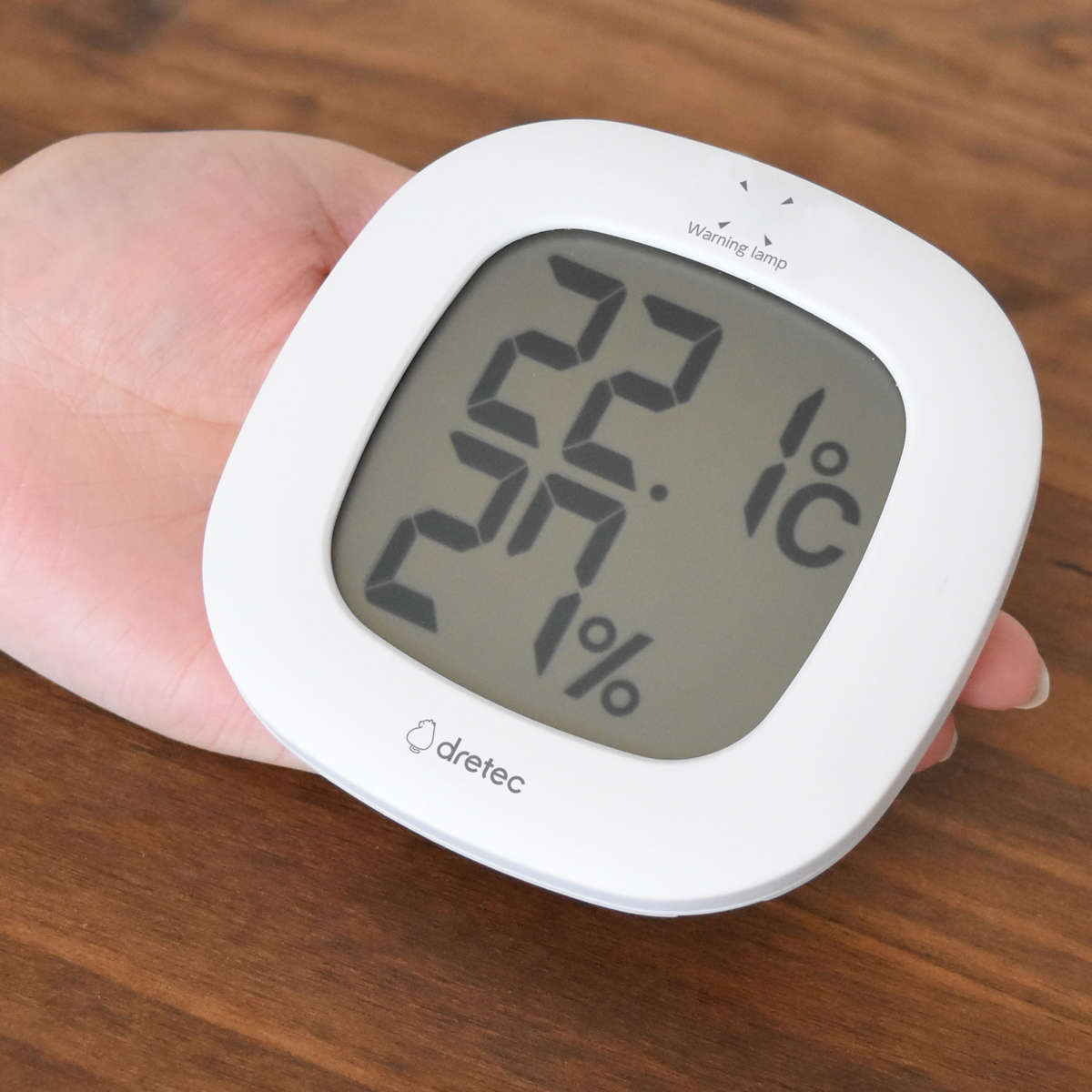 置き場所を選ばない、無駄のないシンプルなデザインの温湿度計です。人の感覚では気づきにくい室内環境の変化をランプでわかりやすく表示し、快適なお部屋づくりをサポートします。