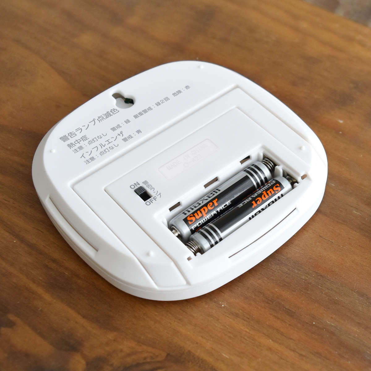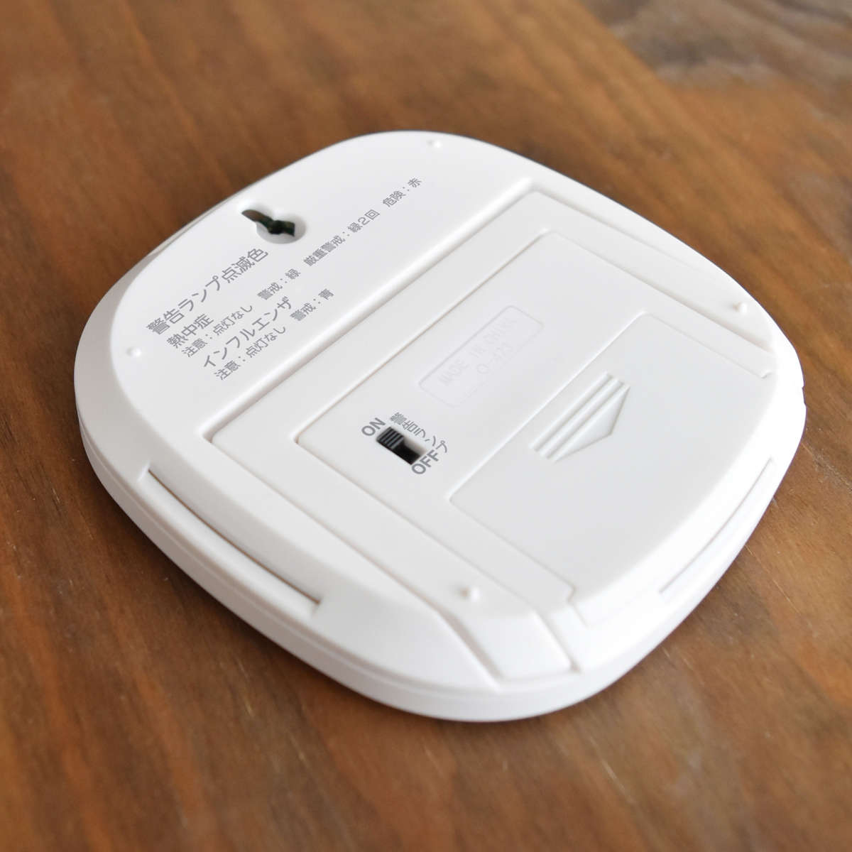 ランプは裏側のスイッチをOFFにするとつかなくなり、温湿度表示のみで使用することができます。