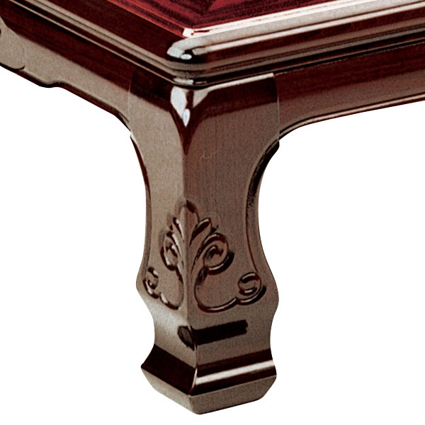 ![]() 天板 上品な木目が美しい天板。厚めの天板と太脚が重厚感を与える最高品質の一品です。 | ![]() 脚部 安定感のあるどっしりとした脚部。美しい彫りが高級感のある仕上がりになっています。 | |