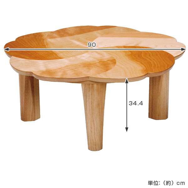 座卓 幅90cm 折れ脚 桜 ローテーブル 日本製 ( 座卓テーブル 和風座卓 座敷机 和室 畳 座敷 木製 天然木 折りたたみ ちゃぶ台 テーブル 完成品 丸テーブル サクラ 突板仕上げ チェリー 折り畳み リビングテーブル 机 )