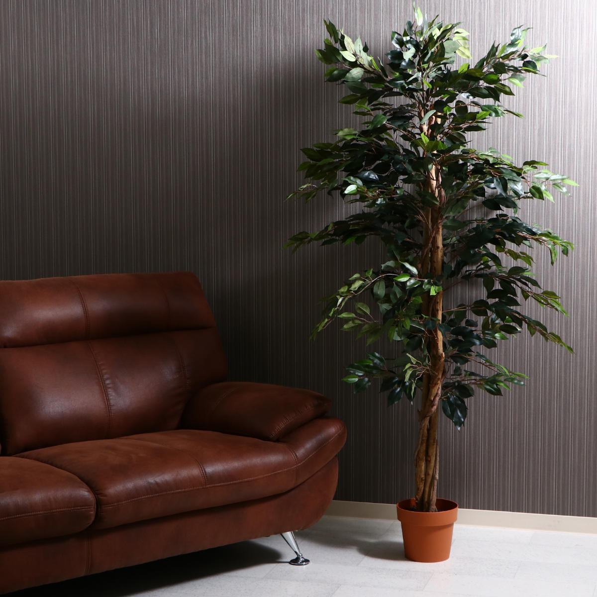 金運・家庭運に良いとされる丸い葉が特徴の、フィカスのフェイクグリーンです。本物そっくりの精密さで、インテリアに木の温もりを与えます。