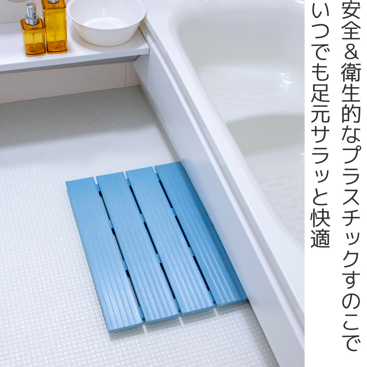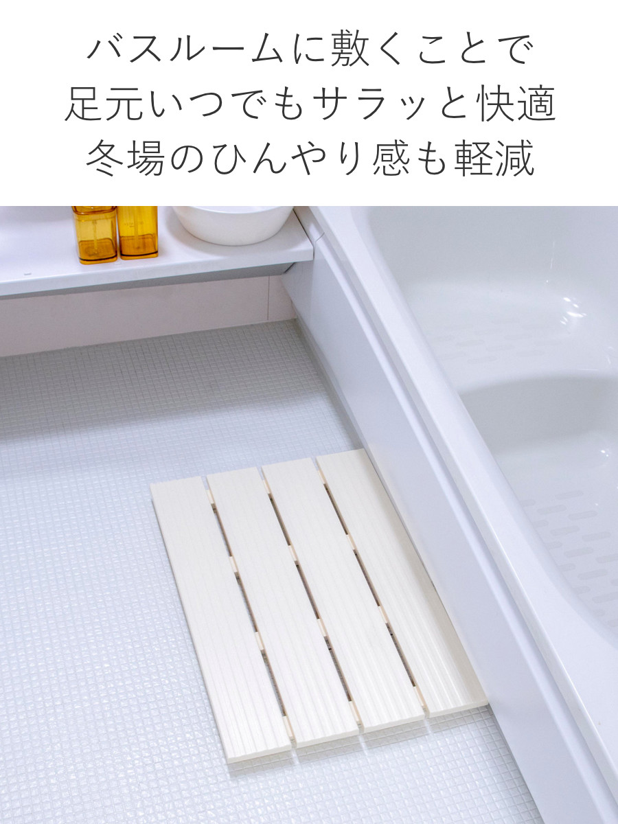 丈夫で長持ちするプラスチック製のすのこです。お風呂の洗い場に敷くことで足元はいつでもサラッと快適、冬場のひんやり感も軽減してくれます。