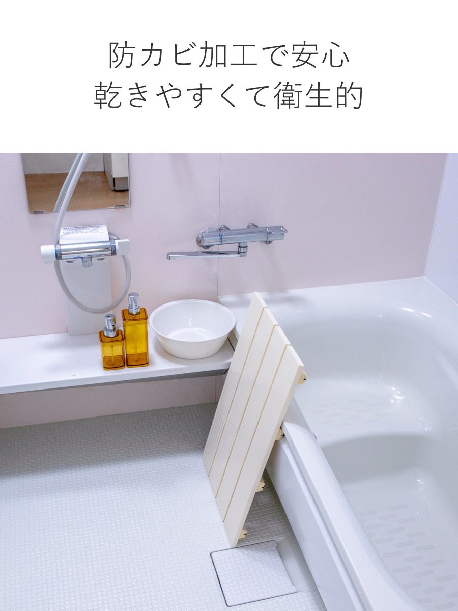 木製のすのことは違い、防カビ加工を施しているため衛生的で安心です。使用後は立てかけておくだけで乾きやすく、バスルームを清潔に保つことができます。