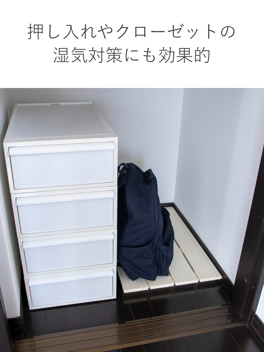 浴室での使用だけでなく、押し入れやクローゼットなどの荷物の下に敷いて湿気対策にもお使いいただけます。
