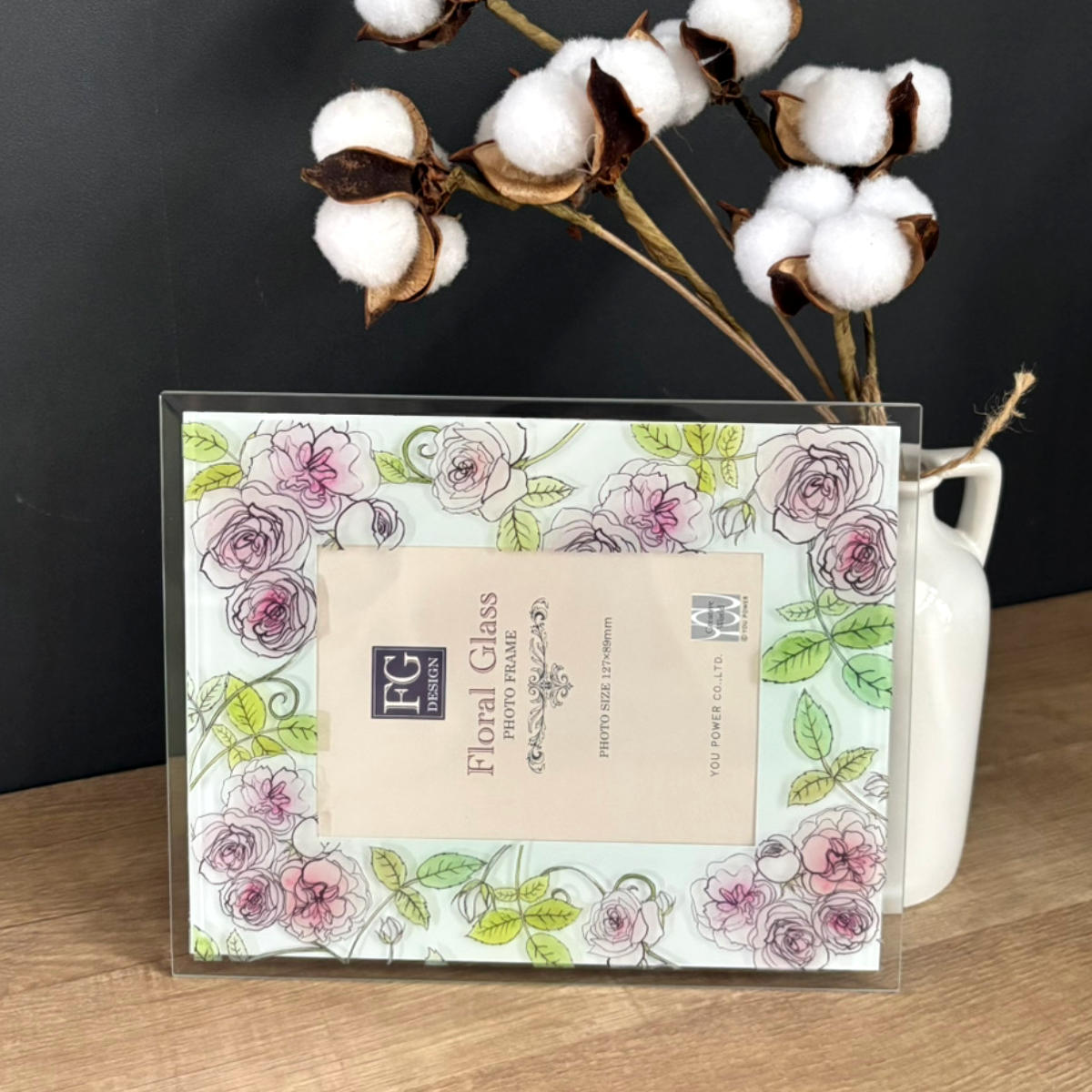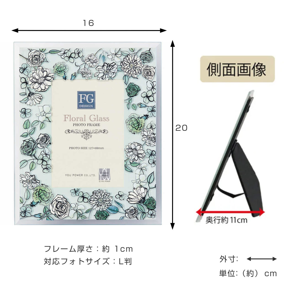 フォトフレーム FGデザイン L判 手描き調 ガラス ( フォトスタンド 写真立て 写真たて 写真入れ フォト フレーム スタンド 縦横 水彩画 フラワー l判 写真フレーム アートフレーム 卓上 おしゃれ かわいい プレゼント お祝い ) 【バラ】