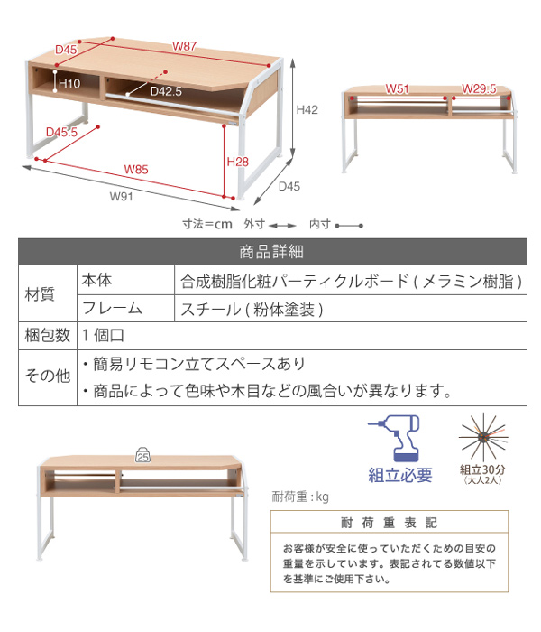| サイズ | 約 幅91×奥行45×高さ42(cm) |