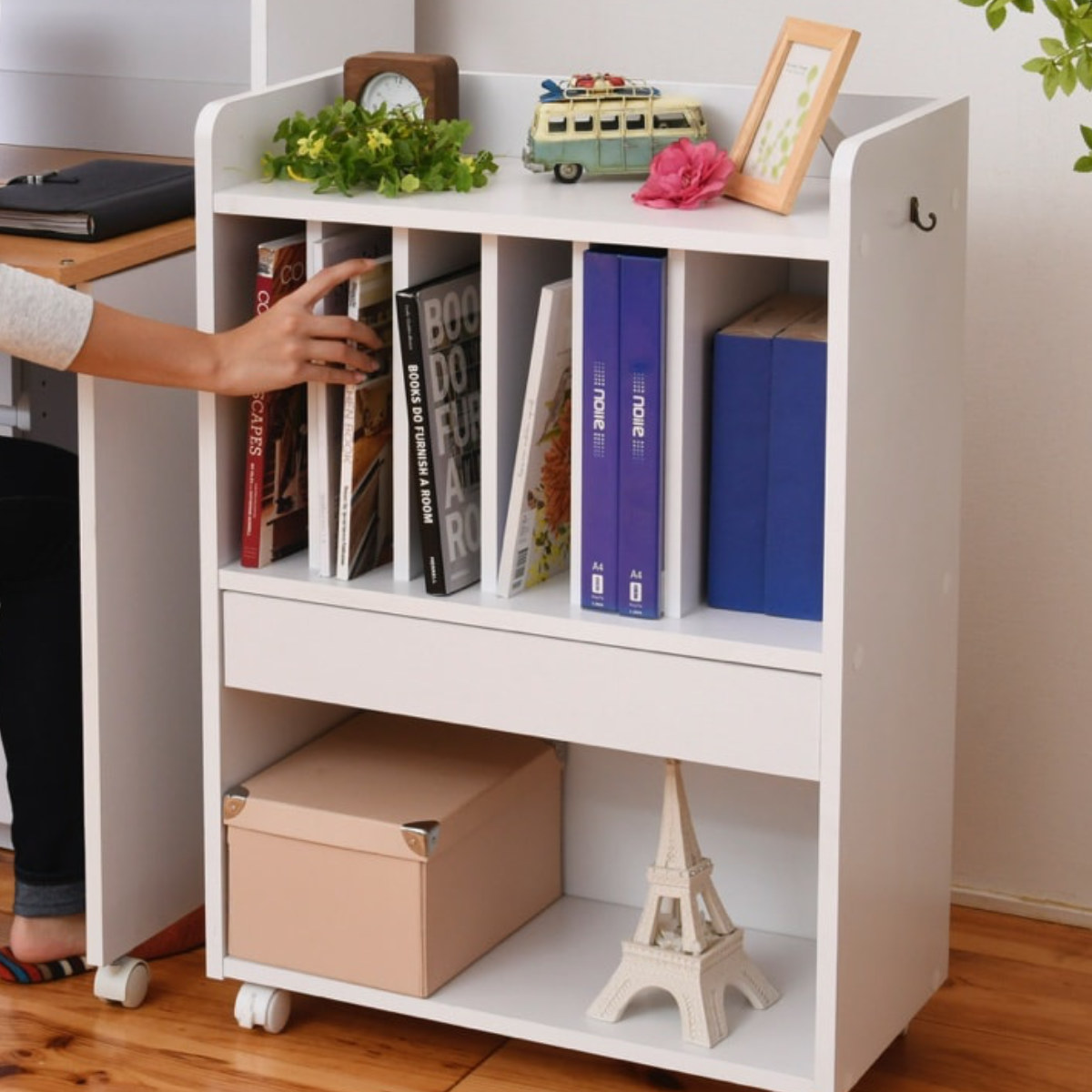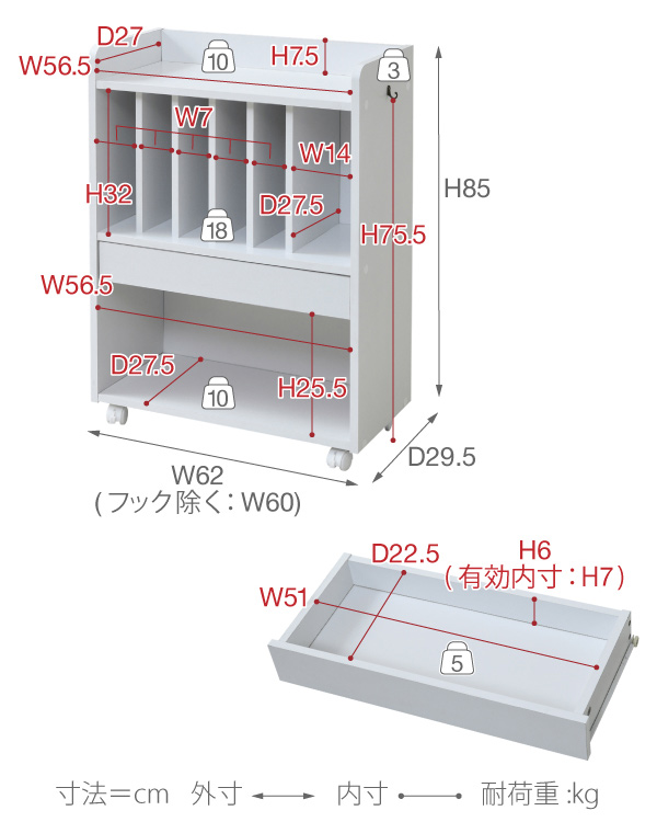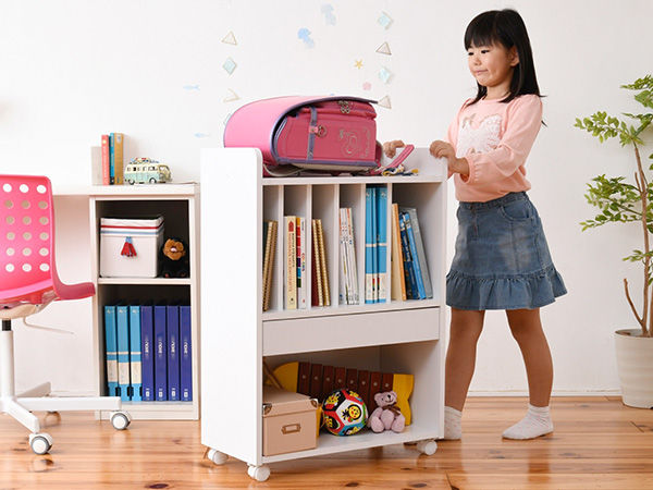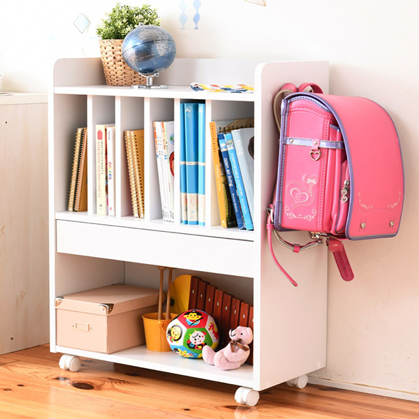 ランドセルラック 幅62cm キャスター付き 木製 カウンター下収納 ( ランドセル収納 ランドセル置き サイドワゴン A4サイズ 引き出し 本棚 子ども 収納棚 ランドセル ワゴン キッズラック お片づけラック ラック 収納 キッズ家具 ) 【ホワイト】