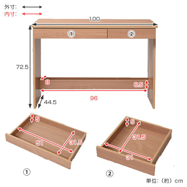 | サイズ | 約 幅100×奥行44.5×高さ72.5(cm) |