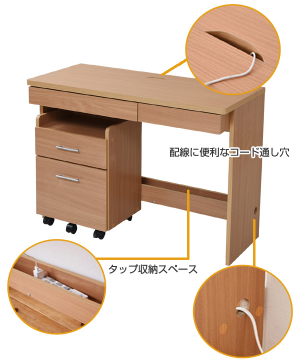 | 材質 | デスク天板:合成樹脂化粧合板(PVC) デスク本体・チェスト:プリント紙化粧合板 |