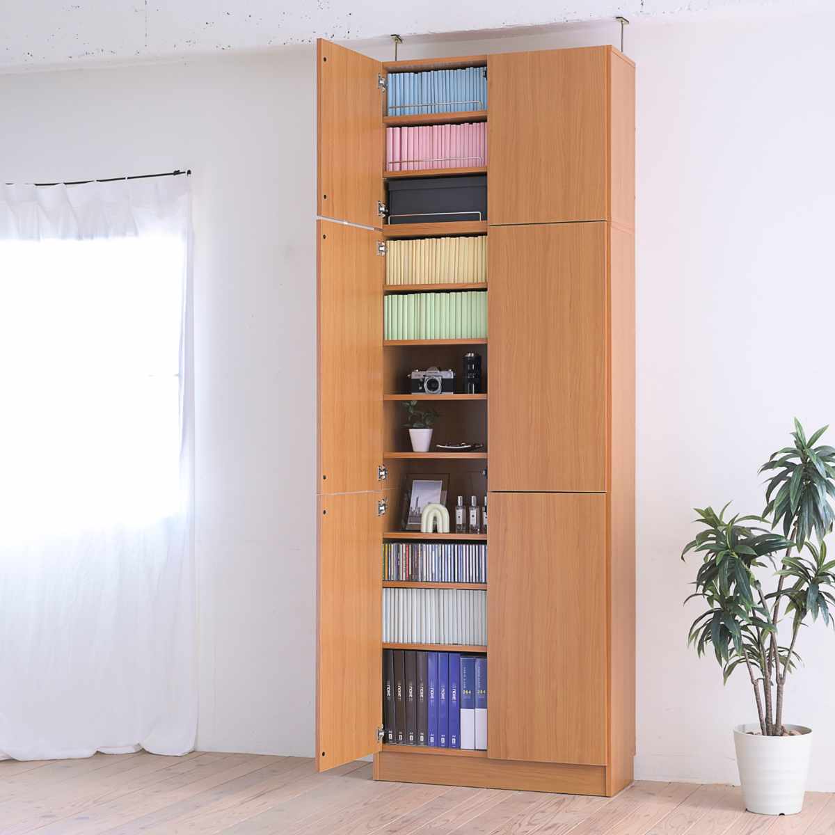 扉付きなので、見た目もスッキリとスマートな空間になります。来客時などは扉を閉めておけば、目隠し扉として使うことができ便利です。書籍や雑誌以外に日用品や食料品の収納にもお使いいただけます。