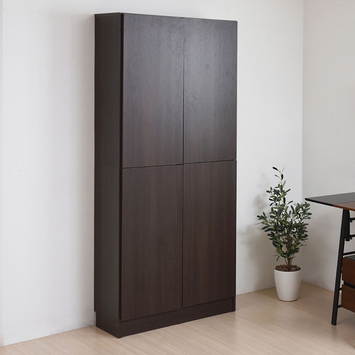 本棚 扉付き 幅81cm 高さ180.5cm 全棚可動 ( ブックシェルフ 1cmピッチ 可動棚 収納 棚 ラック 扉付 シェルフ 深型 家具 コミックラック 大容量 飾り棚 ダークブラウン ホワイト ライトブラウン ) 【ダークブラウン】