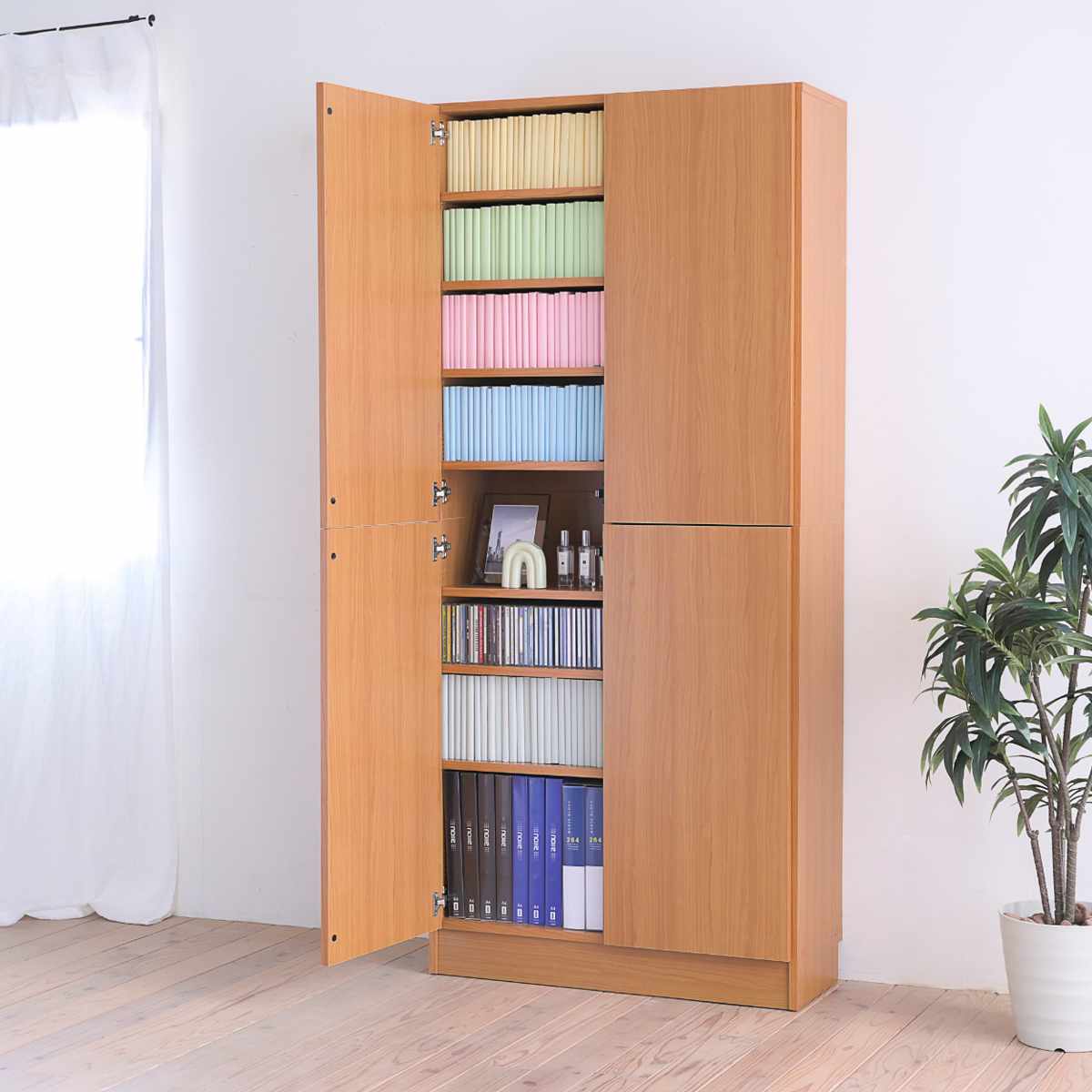 扉付きなので、見た目もスッキリとスマートな空間になります。来客時などは扉を閉めておけば、目隠し扉として使うことができ便利です。書籍や雑誌以外に日用品や食料品の収納にもお使いいただけます。