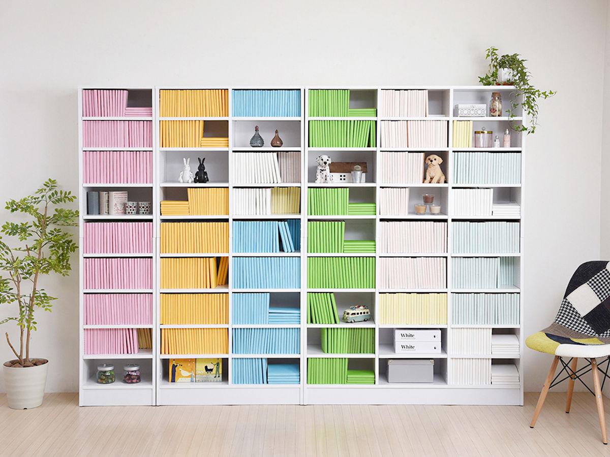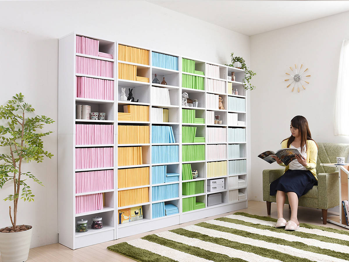 棚の高さを1cmごとに調節できる可動棚により、スペースを最大限使えて、無駄なく沢山の本を収納していただけます。棚の数も多く付属しているので幅広いサイズの物を置くことが可能です。空いたスペースには小物類の収納もできます。