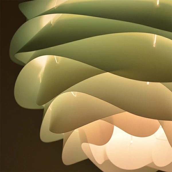 花のようなドレスをまとった美しいペンダントライトです。ダイニング照明にピッタリな1灯タイプです。コンパクトなサイズ感なので補助として複数設置するのも素敵です。剥いたりんごの皮にも似た羽を6枚重ね、魅惑的な陰影を生み出しました。幾何学的で植物をイメージさせるデザインは、まさに北欧デンマークの得意とするところです。
