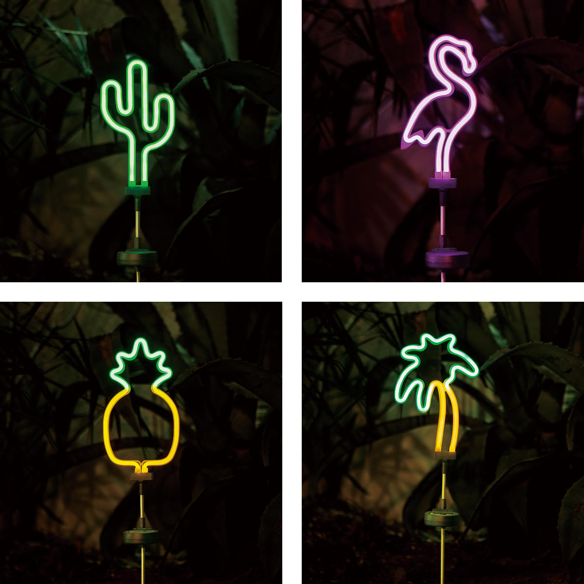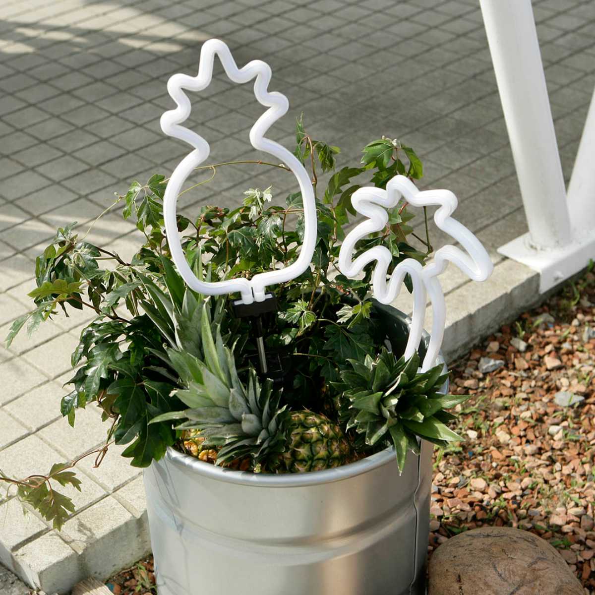 賑やかなシンボルになるソーラーパネル付きネオンライトです。日中は植物と共に日光を浴び、夜になるとくっきりと姿を現すネオンは独特なムードを醸し出します。 街中でふと目にした時、ワクワクしてしまうそんなアイテムです。