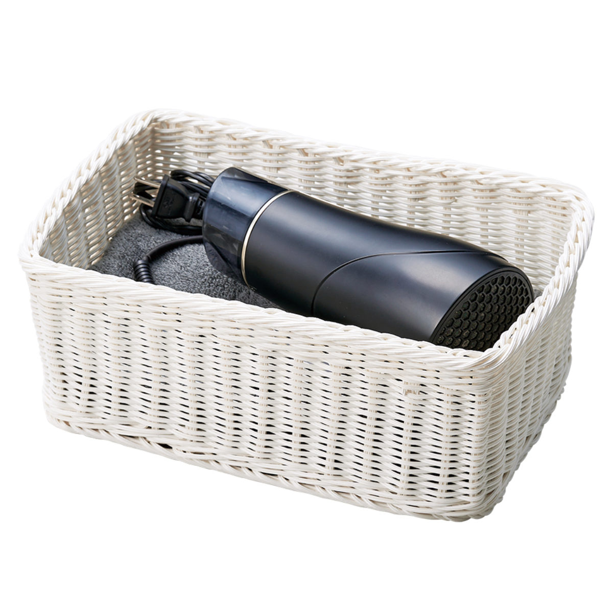 かご 洗える 抗菌素材 ドライヤー入れバスケット L KLEANE ( 手編み 収納 カゴ 水洗い 食洗機対応 レンジ対応 幅30×奥行20.5×高さ11cm 小物収納 収納かご キレーネ 小物入れ おしゃれ 丈夫 ハンドメイド リビング 洗面所 ) 【ホワイト】