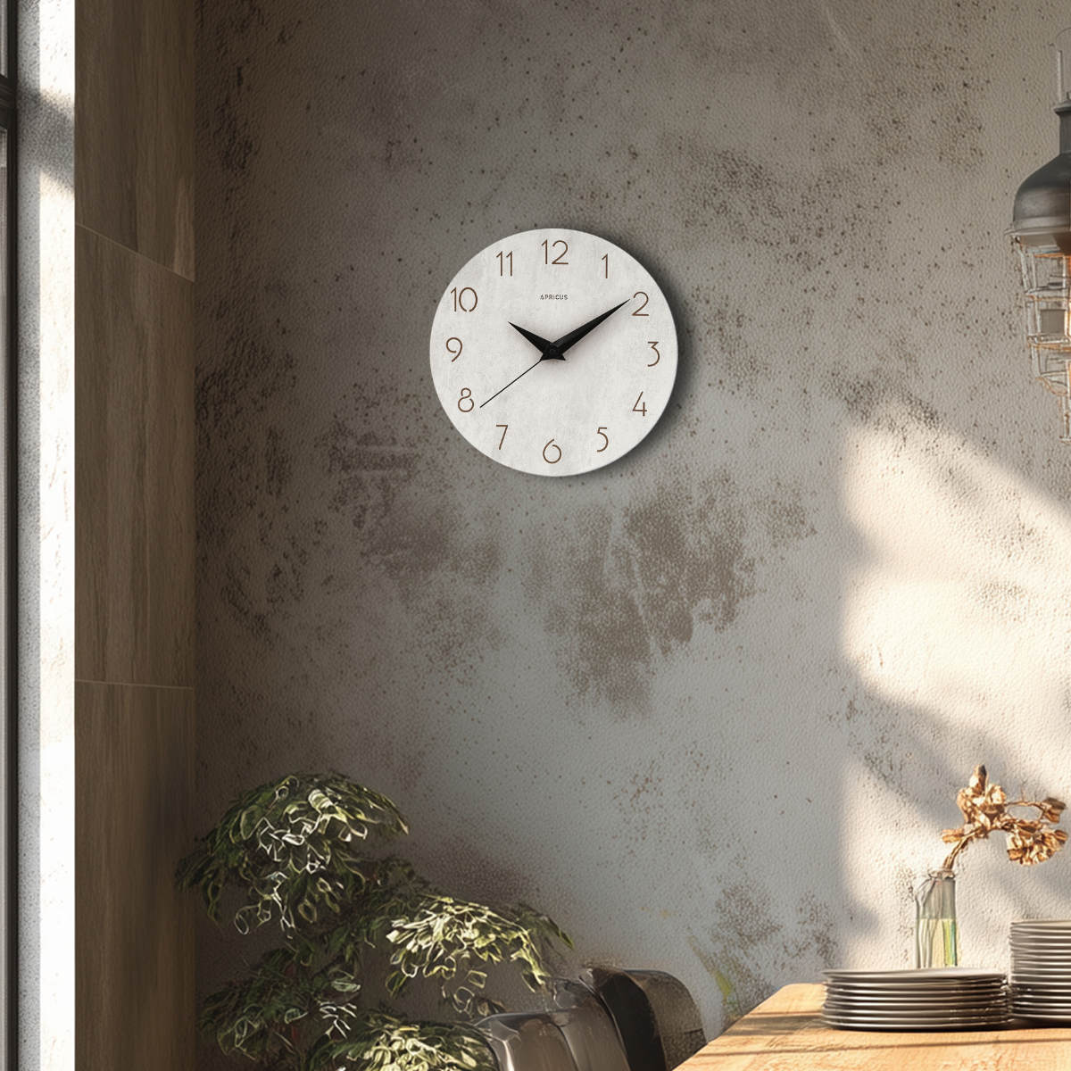 個性的なコンクリートの質感に、異素材の長短針がアクセントになった掛け時計です。モダンでクールな印象の空間を演出し、時計自体がオブジェとして壁にアクセントを持たせ、壁を彩るインテリアとしてもお楽しみいただけます。