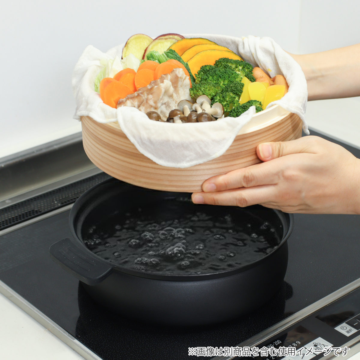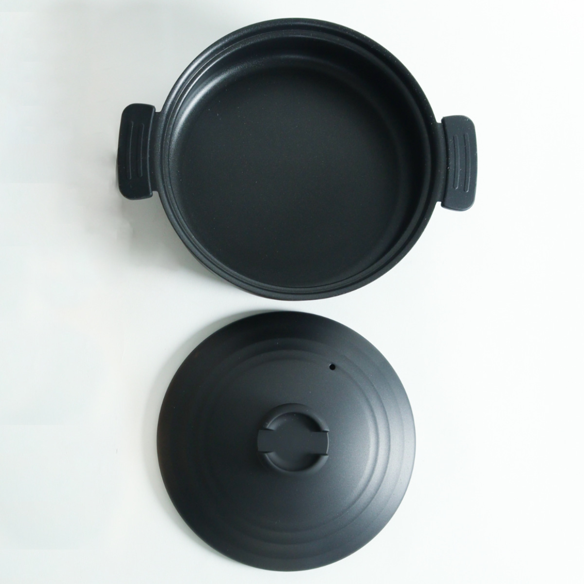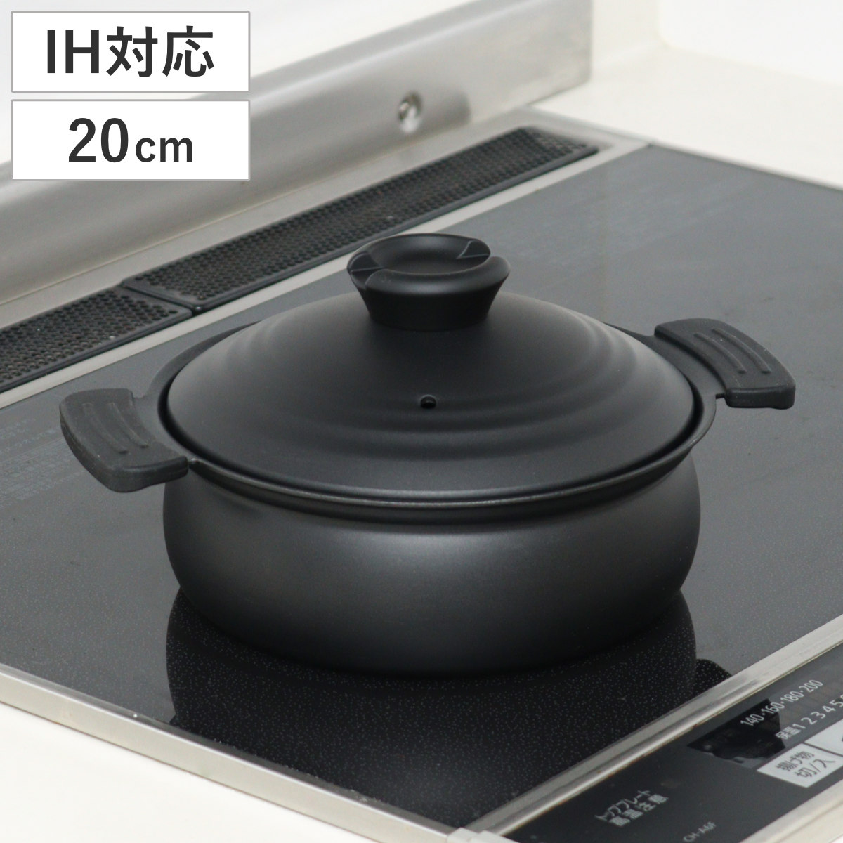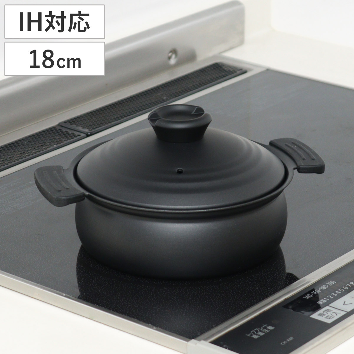 シックなブラックカラーが魅力的な、フッ素加工の卓上鍋です。2~3人分の料理にちょうどいいサイズで、雑炊やしゃぶしゃぶ、キムチ鍋など、様々な鍋料理に活躍します。IH・ガス火どちらにも使えます。