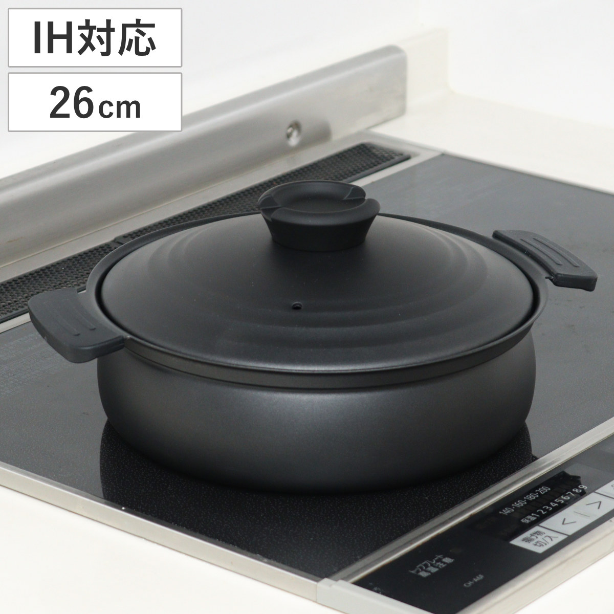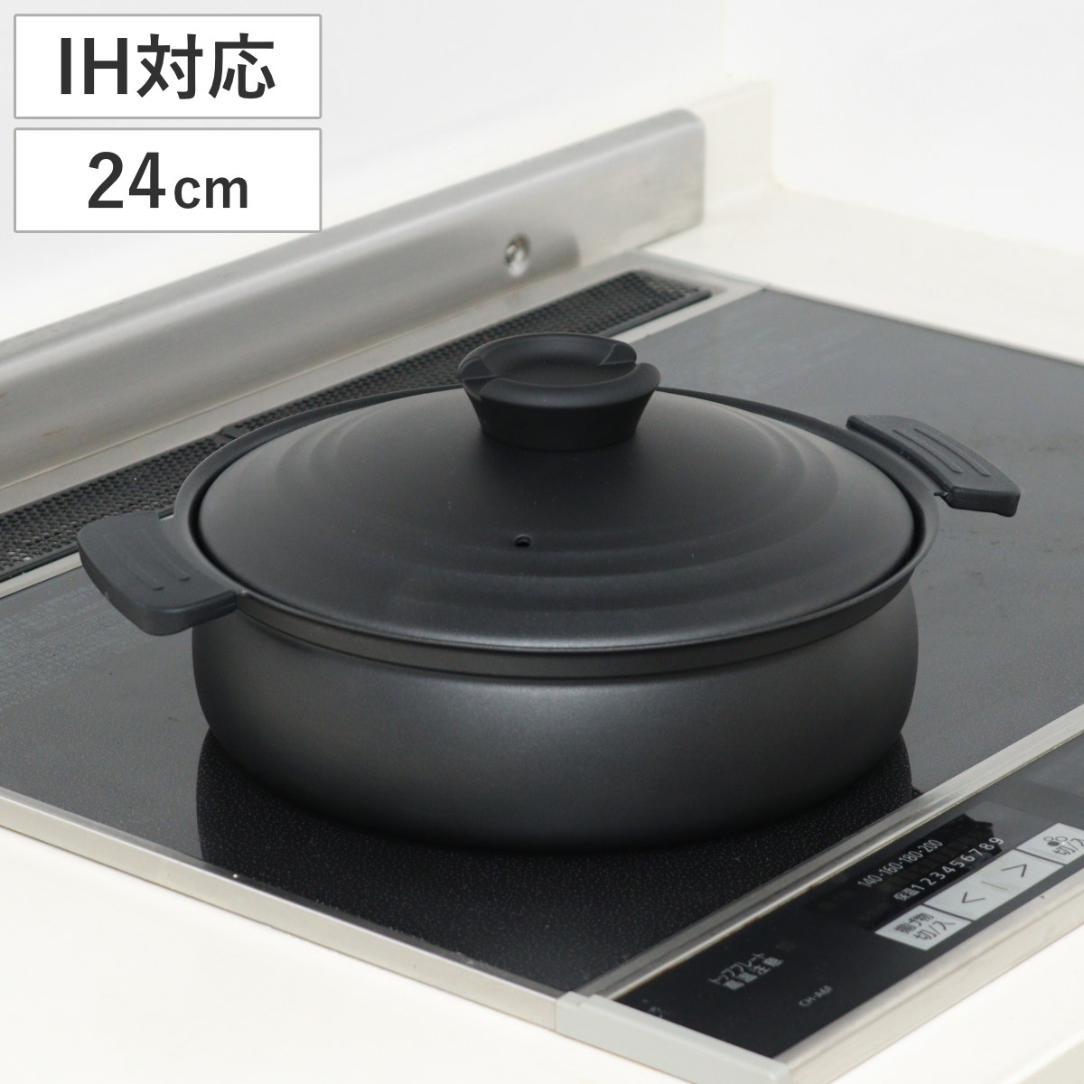卓上鍋 24cm IH対応 軽量 フッ素樹脂加工 ( ガス火対応 ふっ素加工 フッ素加工 軽い 両手鍋 蓋付き 24センチ 鍋 卓上なべ ハンドルカバー付き 2人用 3人用 季節鍋 アルミ製 黒 )