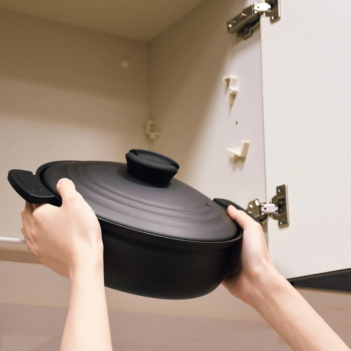 軽さにこだわって作られた土鍋風のアルミ製卓上鍋です。軽量なので、食卓に運ぶ際も、洗う際も、高い棚などに収納する際も、それぞれの作業がとてもラクにできます。