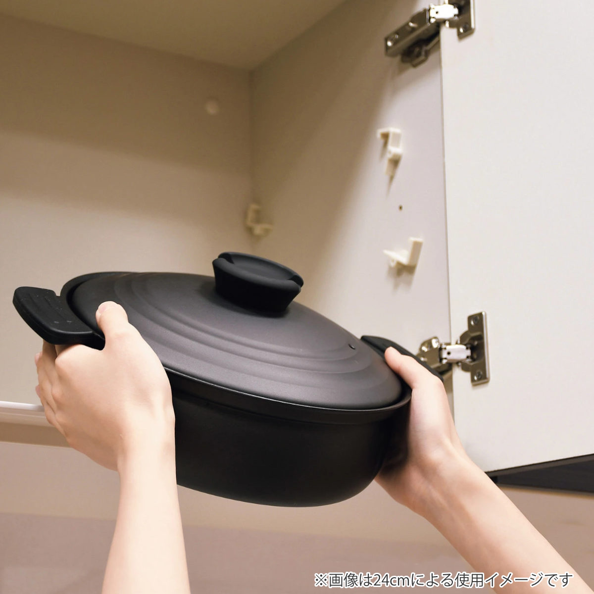 軽さにこだわって作られた土鍋風のアルミ製卓上鍋です。軽量なので、食卓に運ぶ際も、洗う際も、高い棚などに収納する際も、それぞれの作業がとてもラクにできます。