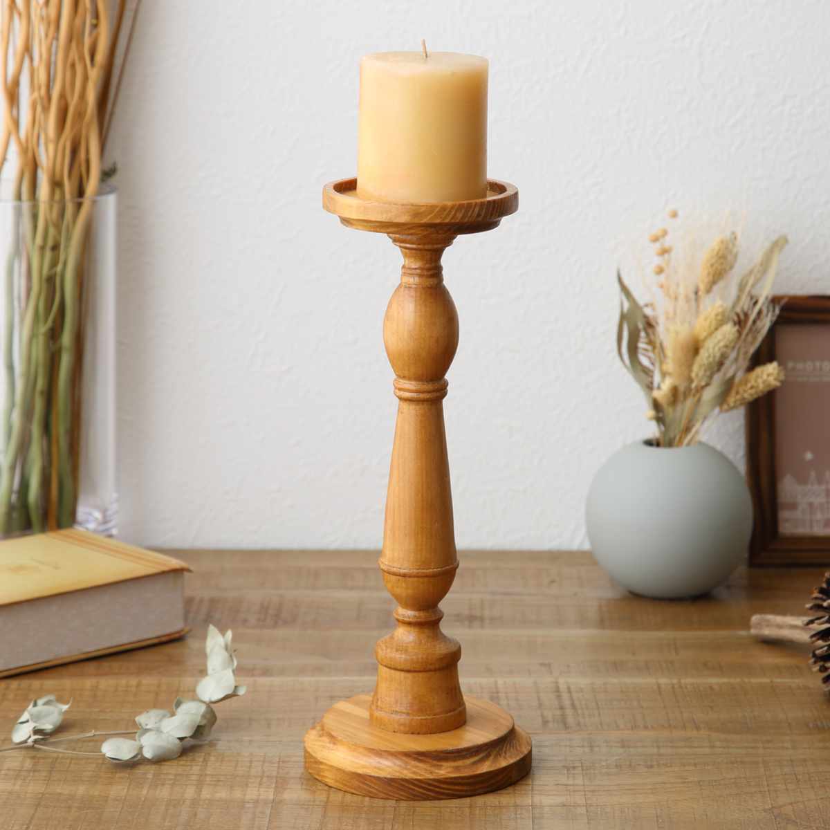天然のパイン材を使用したアンティーク風のキャンドルスタンドです。アンティークな雰囲気を再現するため、全て手作業で仕上げられているので、ハンドメイドの風合いと木の温もりをお楽しみいただけます。