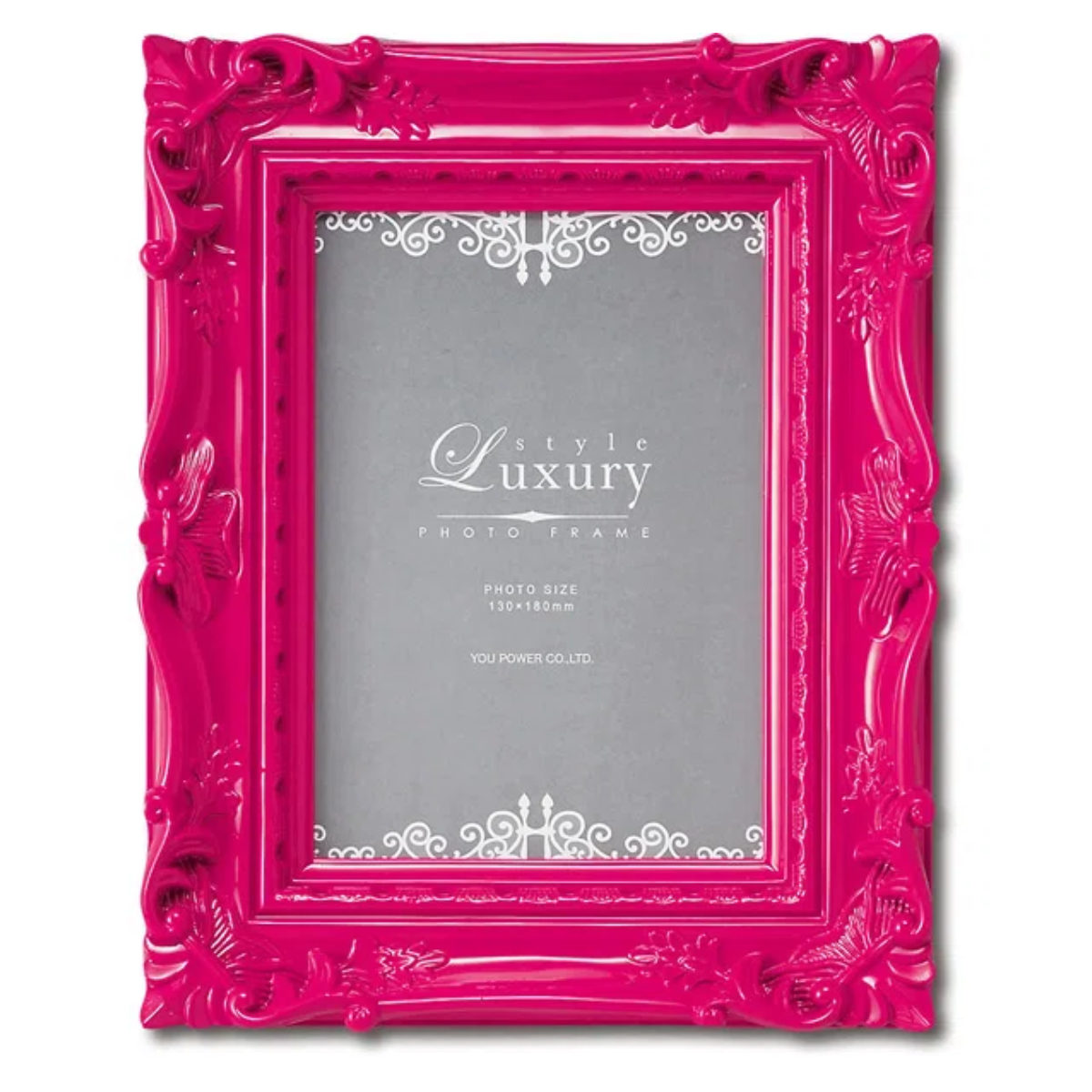 鮮やかな色遣いと艶のある塗装が美しいフォトフレームです。光沢のある仕上がりが、高級感とモダンな雰囲気を演出します。精巧なモールディング加工が施されており、上品なデザインで写真やアートを美しく引き立てます。