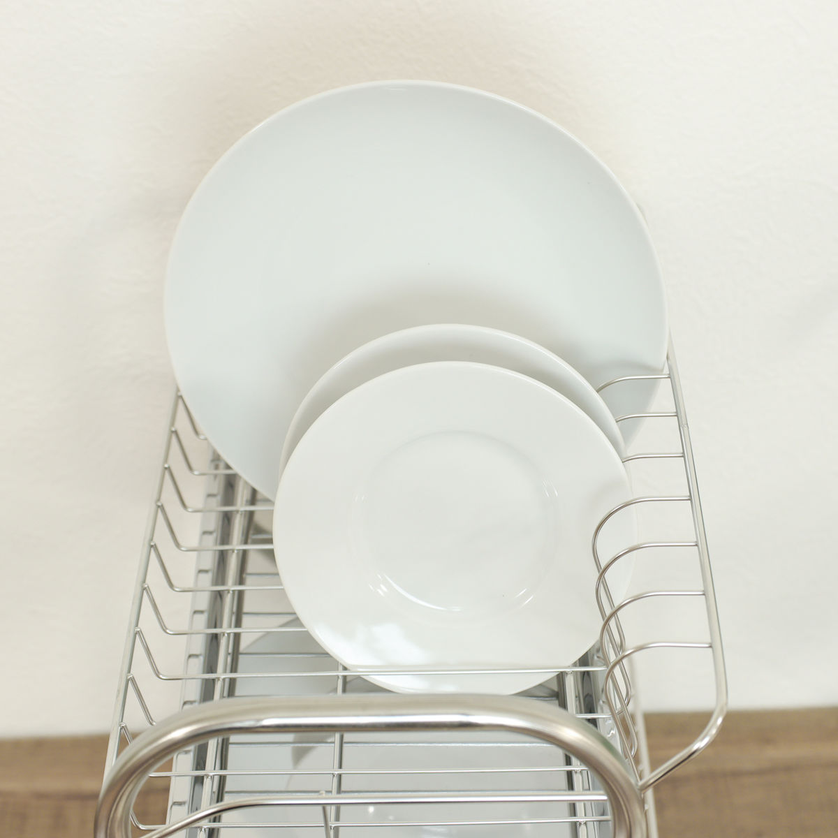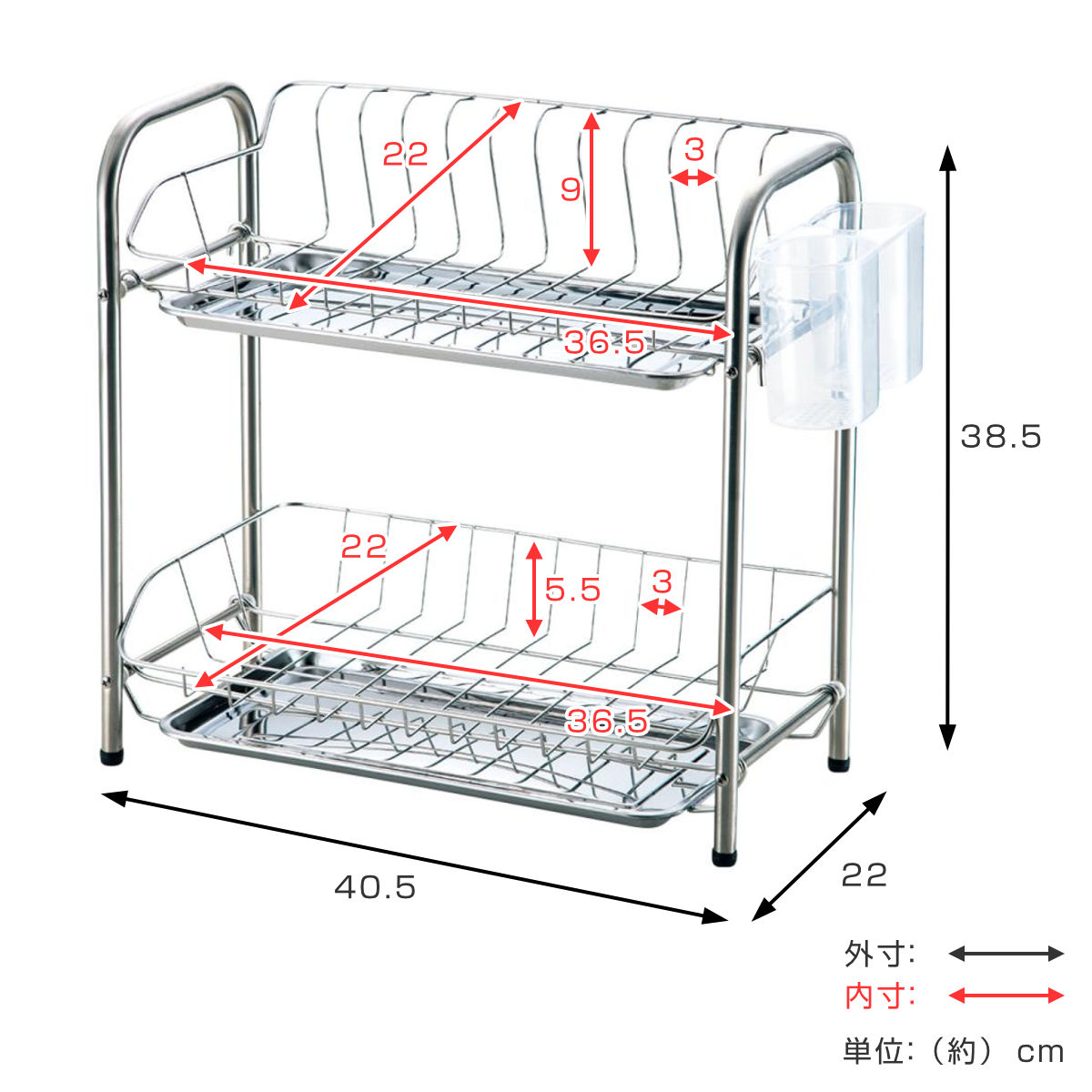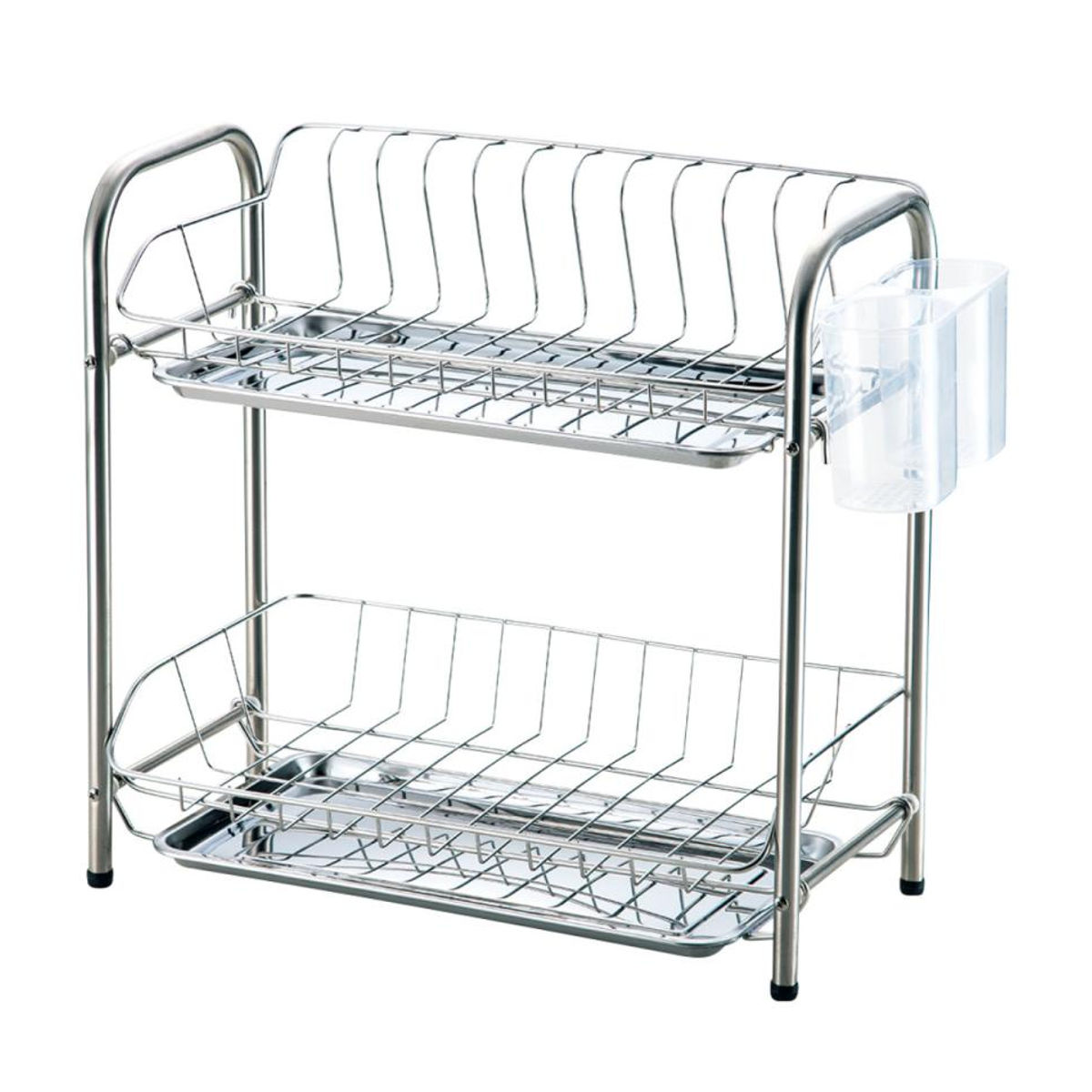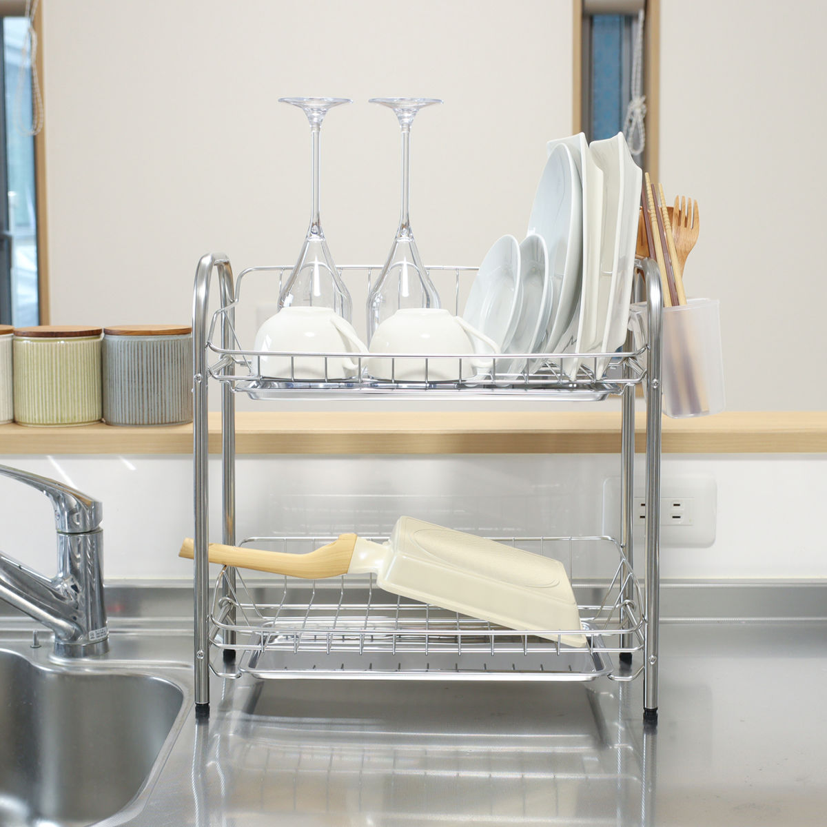 ステンレス製の2段式水切りラックです。奥行22cmのスリム設計なので、シンク横やコンパクトなキッチンにもおすすめです。