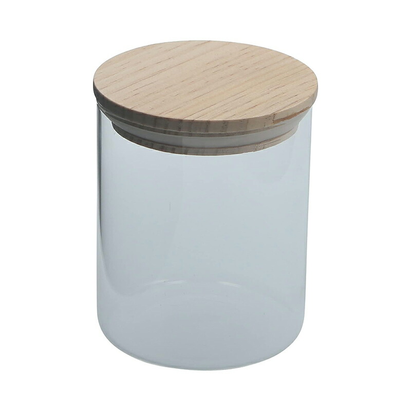 保存容器 700ml 木蓋耐熱キャニスター ( ガラス 耐熱ガラス 密閉 木蓋 キャニスター 保存びん ガラスキャニスター ストッカー スタッキング 積み重ね おしゃれ かわいい 丸型 ガラス容器 透明 パッキン )