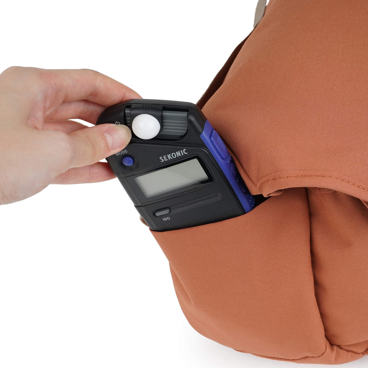 前面にはマグネット開閉式のスリップポケット、サイドには2つのポケットが付いています。予備バッテリーやSDカード、メンテナンス用品など細かなアクセサリー類もきちんと収納できます。