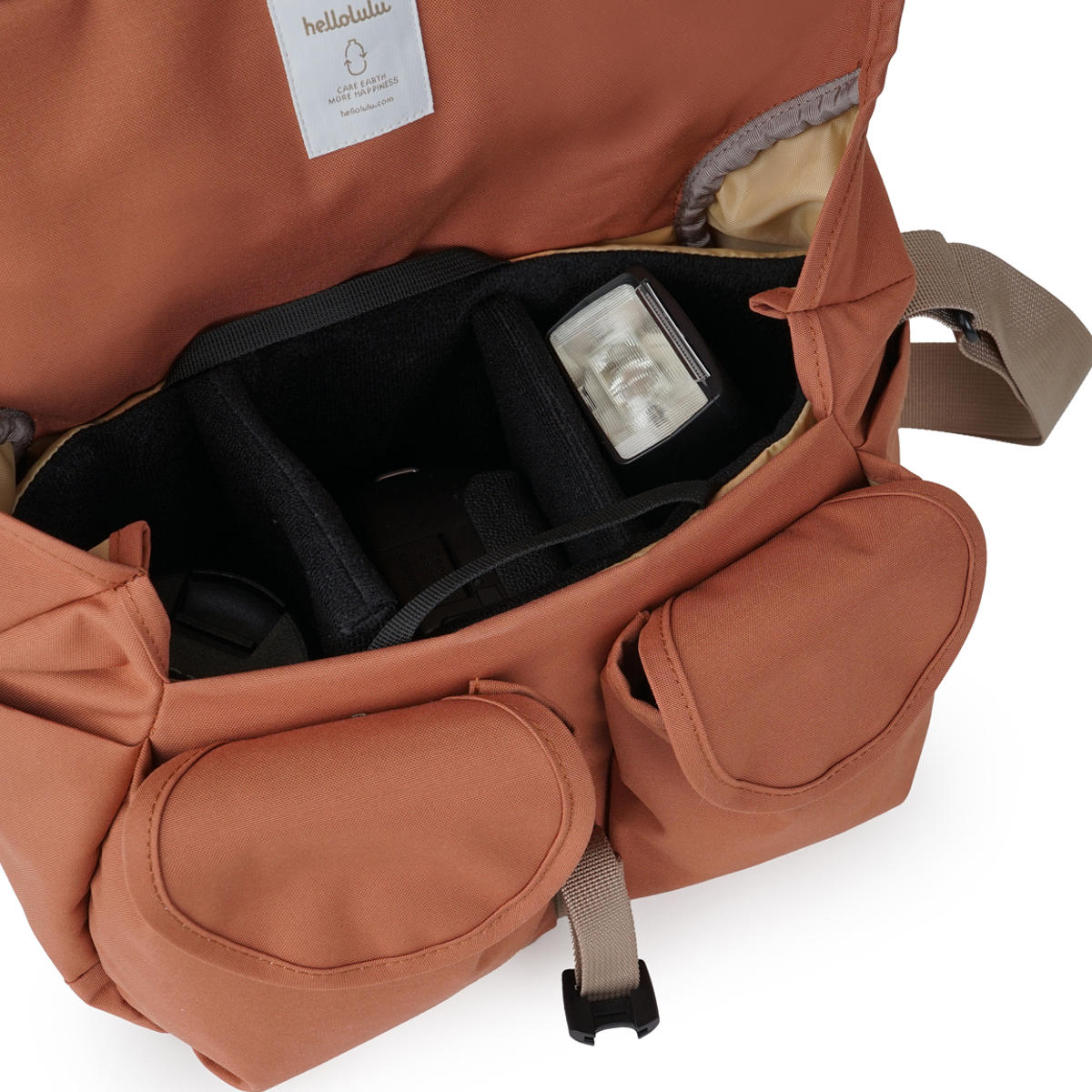 カメラバッグ hellolulu VON ボン ( ハロルル ショルダー 一眼レフ ショルダーバッグ カメラケース バッグ 軽い 撥水加工 はっ水 バックル開閉式 仕切り付き ポケット付き カメラ小物 アクセサリー類 おしゃれ )