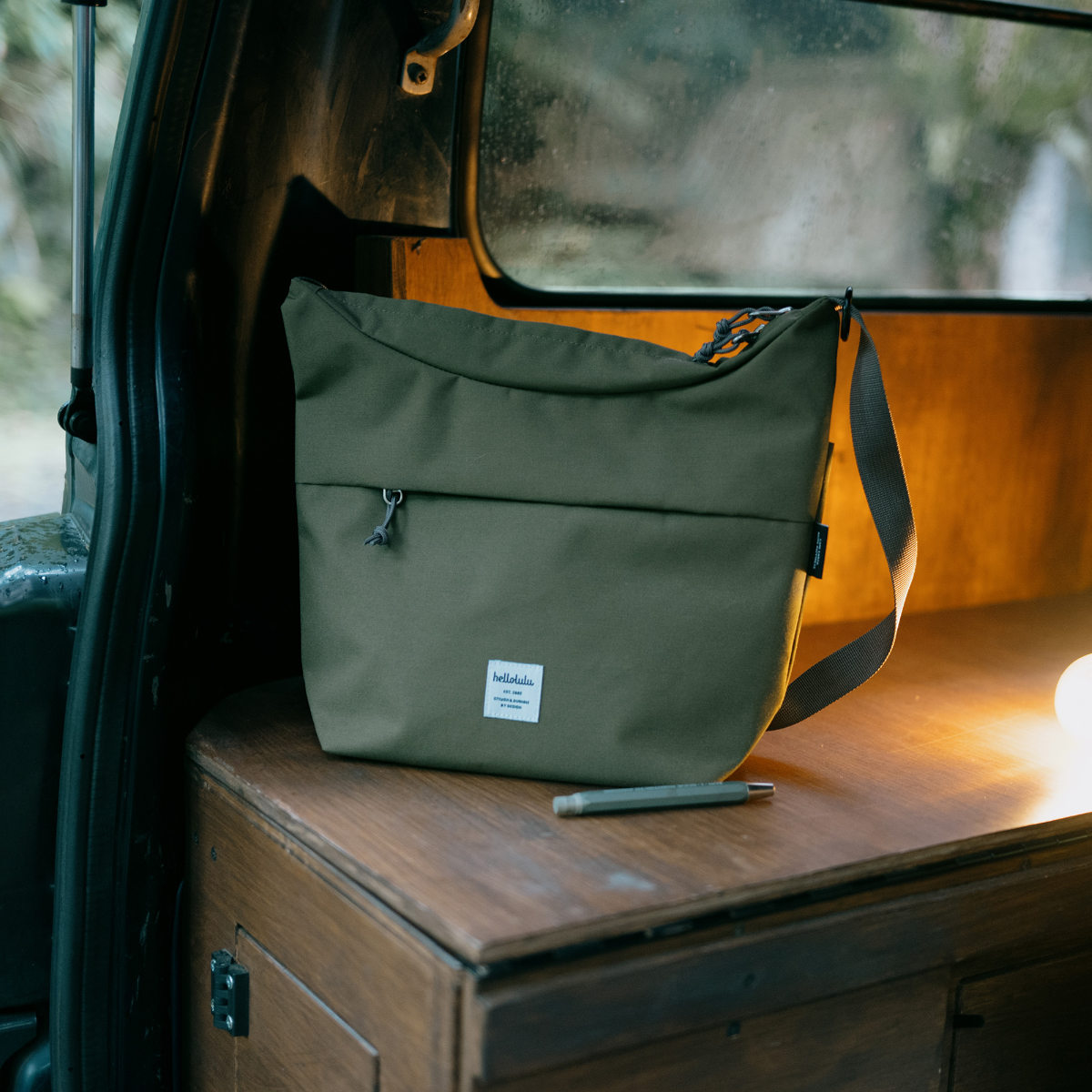 ボディバッグ hellolulu ルーカス LUCAS ( ハロルル ショルダーバッグ バッグ ショルダー 鞄 かばん 軽い 斜め掛け ボトル収納 ループ付き 撥水加工 フェス アウトドア ポケット キークリップ おしゃれ ) 【CapuletOlive】