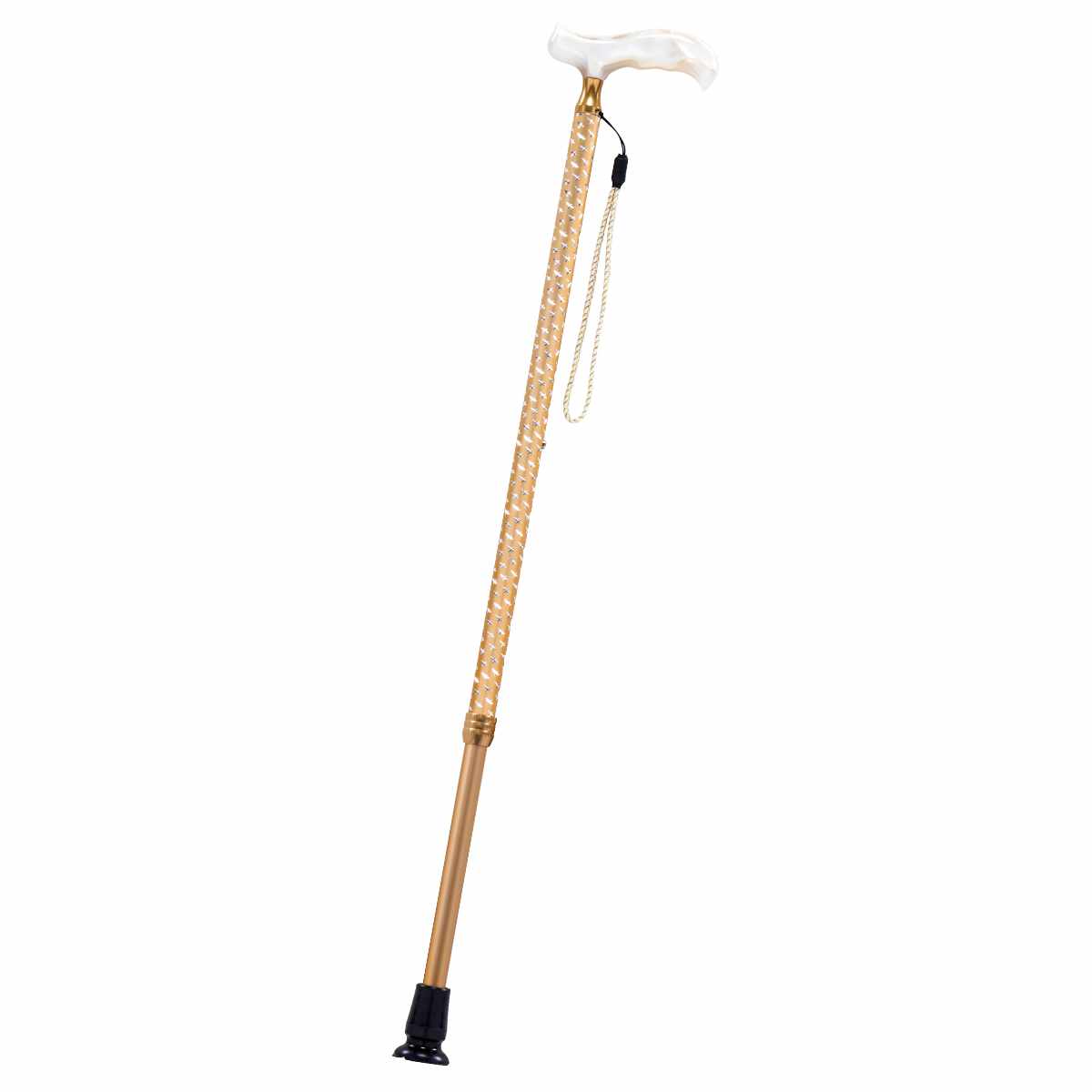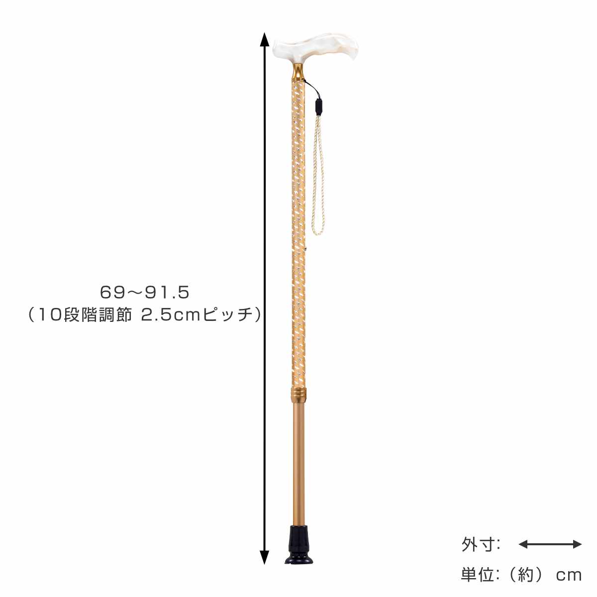 杖 伸縮 クロスカット クロスゴールド 歩行 補助 キラキラ ( つえ ステッキ 伸縮杖 伸縮式 10段階調節 一点杖 軽量 女性 男性 おしゃれ プレゼント 長さ調節 介護用 高齢者 歩行補助 ストラップ 介護用品 転倒防止 )