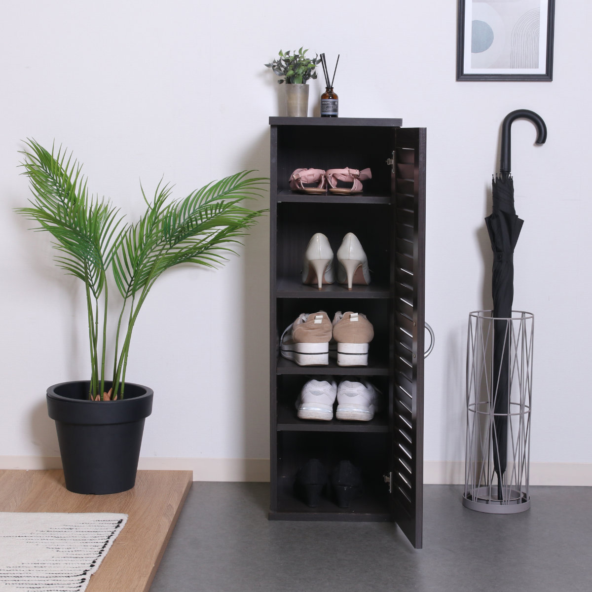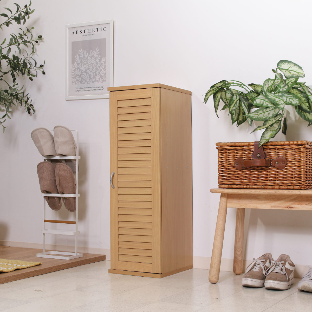 下駄箱 スリムシューズボックス ルーバー扉 5段 幅28.7cm ( 靴 収納 玄関 スリム 省スペース 一人暮らし コンパクト 扉付き 靴収納 玄関収納 靴入れ 木目 奥行33cm 木製 ルーバー 連結可能 ) 【ナチュラル】