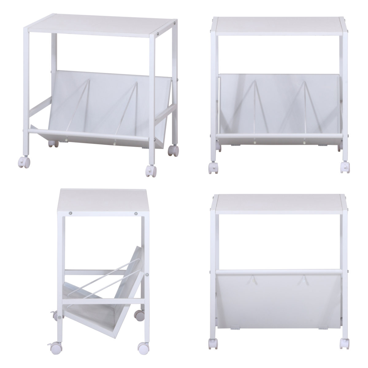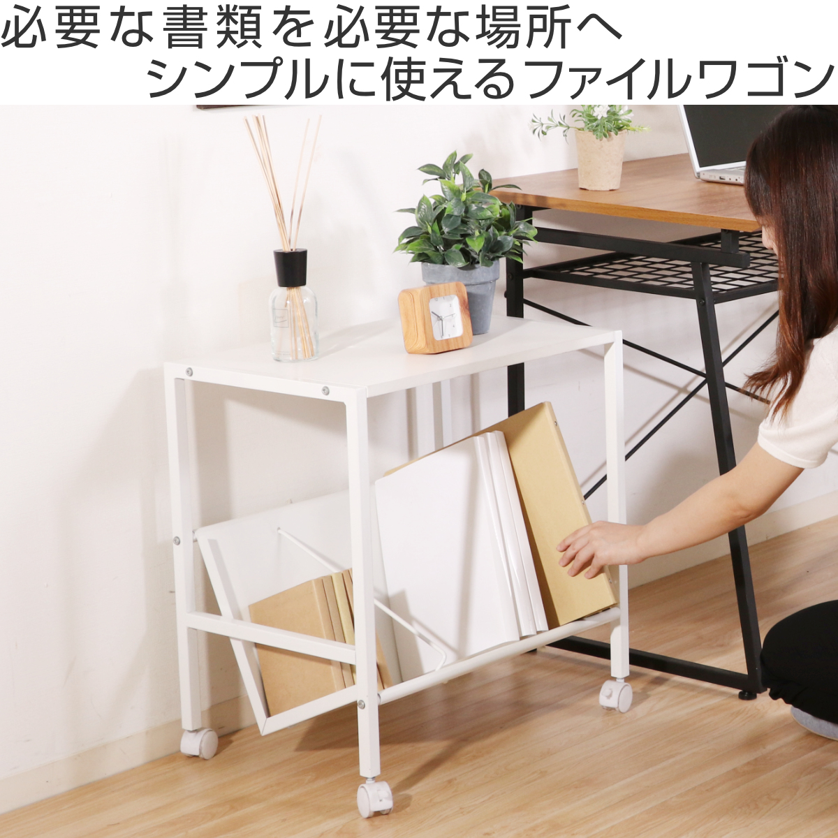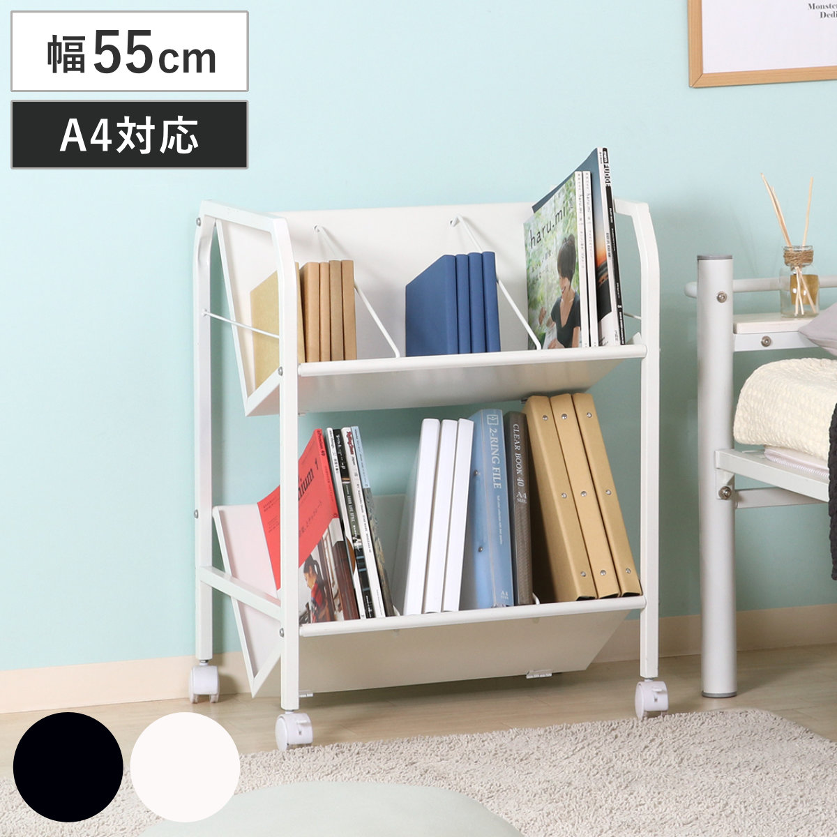 ファイルワゴン 幅55cm 1段 キャスター付 ( ワゴン A4対応 書類 ファイル 収納 ブックエンド付 ファイルラック 棚 ラック 斜め 本棚 机下 ブラック ホワイト A4 ) 【ホワイト】