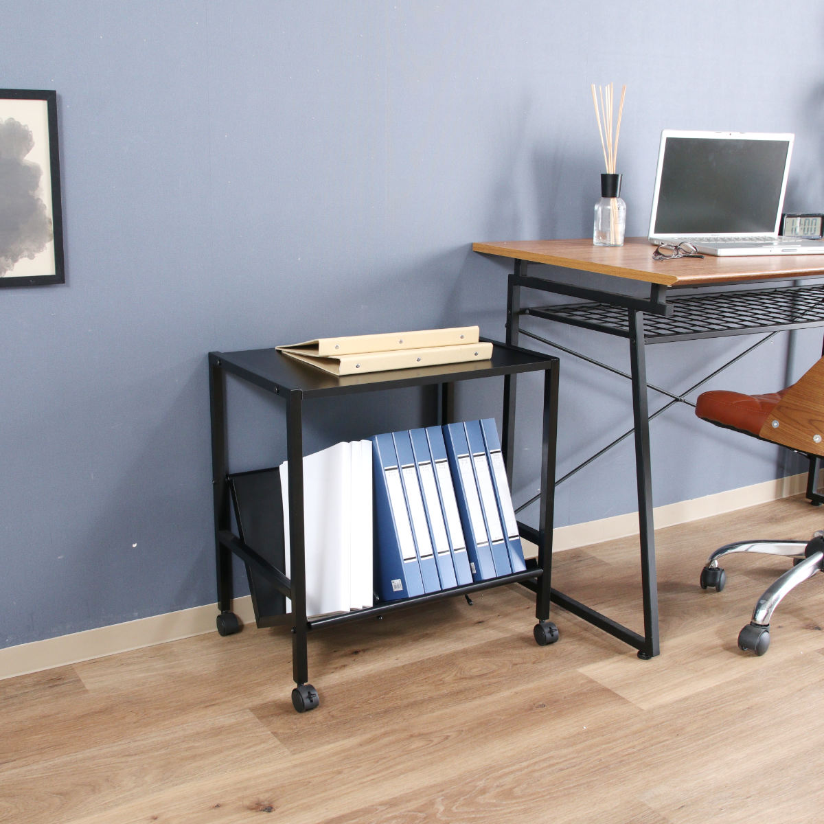 書類をたくさん収納していてもキャスター付きなのでスムーズに移動できます。お掃除の際も楽に移動していただけます。