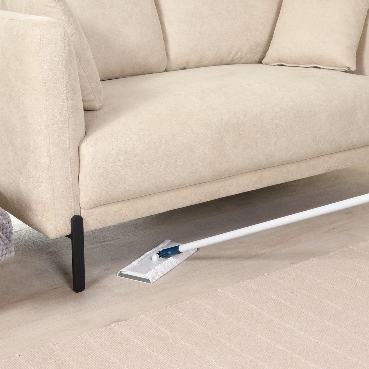 ソファの下は柄の長い掃除用品やロボット掃除機も通れます。埃が溜まりやすいソファの下を綺麗に保つことができます。