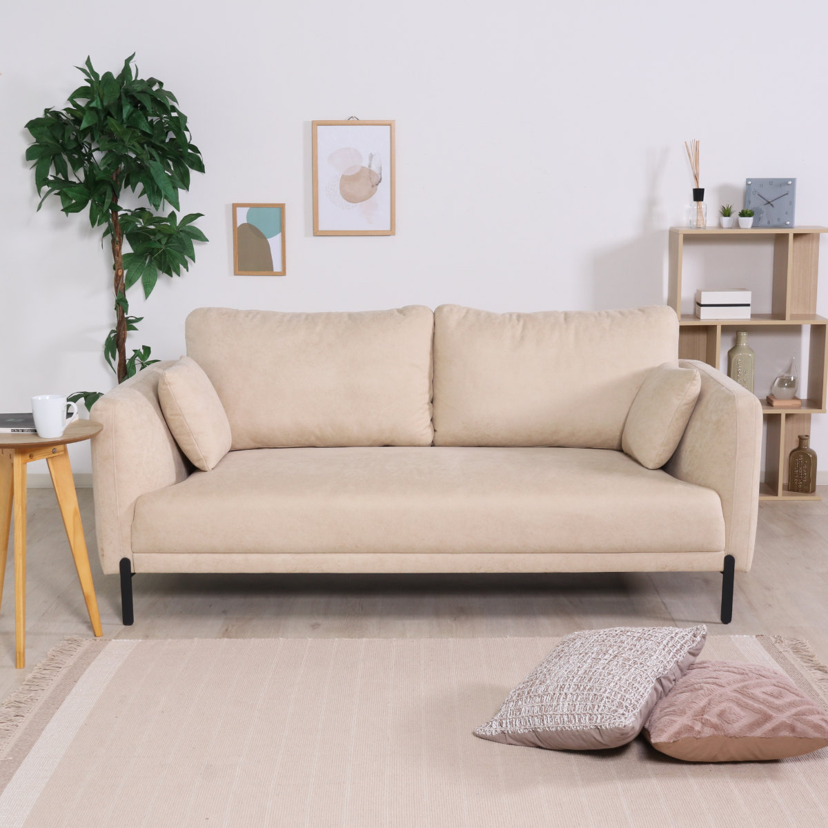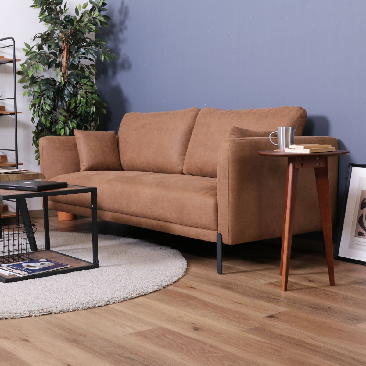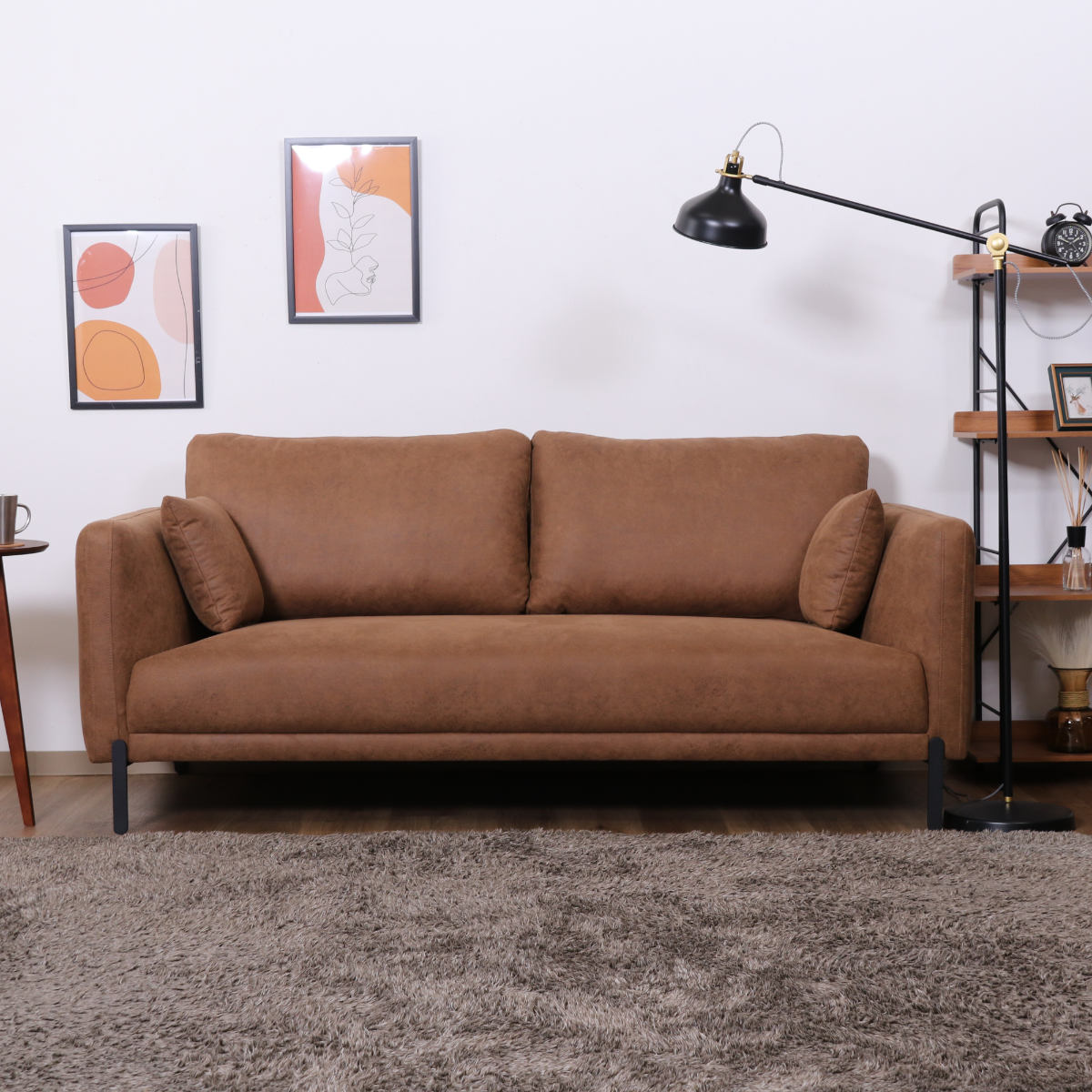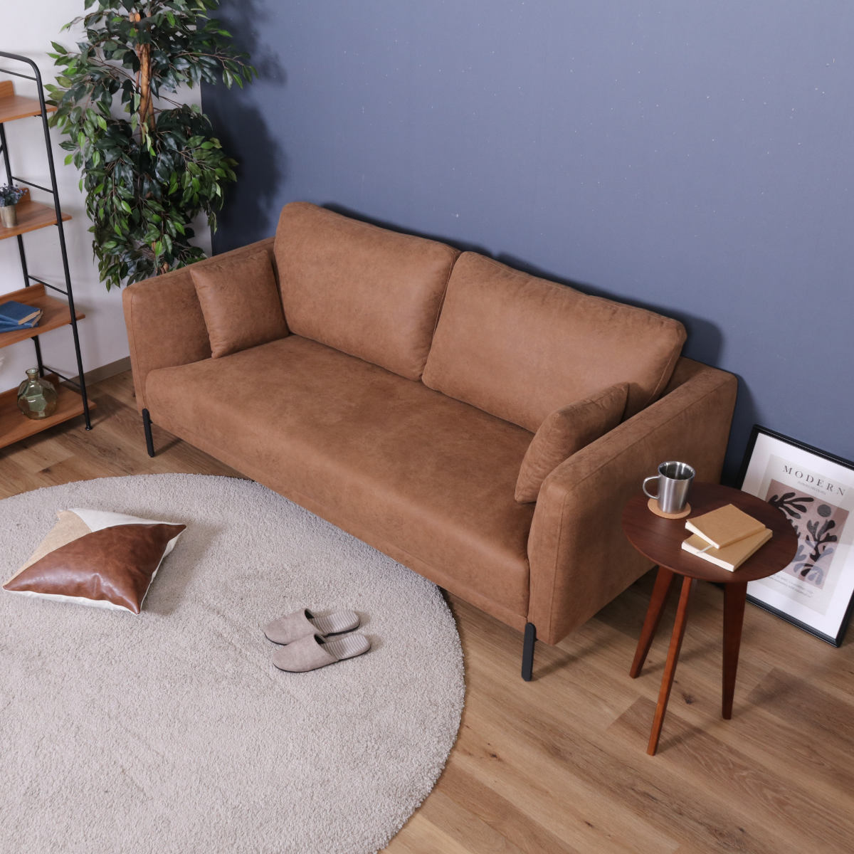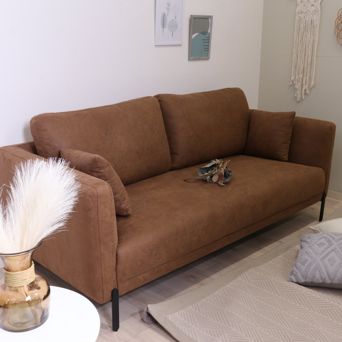 洗練されたデザインのシンプルなソファです。座面も広く作られているため、ソファの上であぐらをかいたり、深く腰掛けたりと自由にくつろいでいただけます。ブラックスチールの細い脚がお部屋に引き締まった印象に見せてくれます。