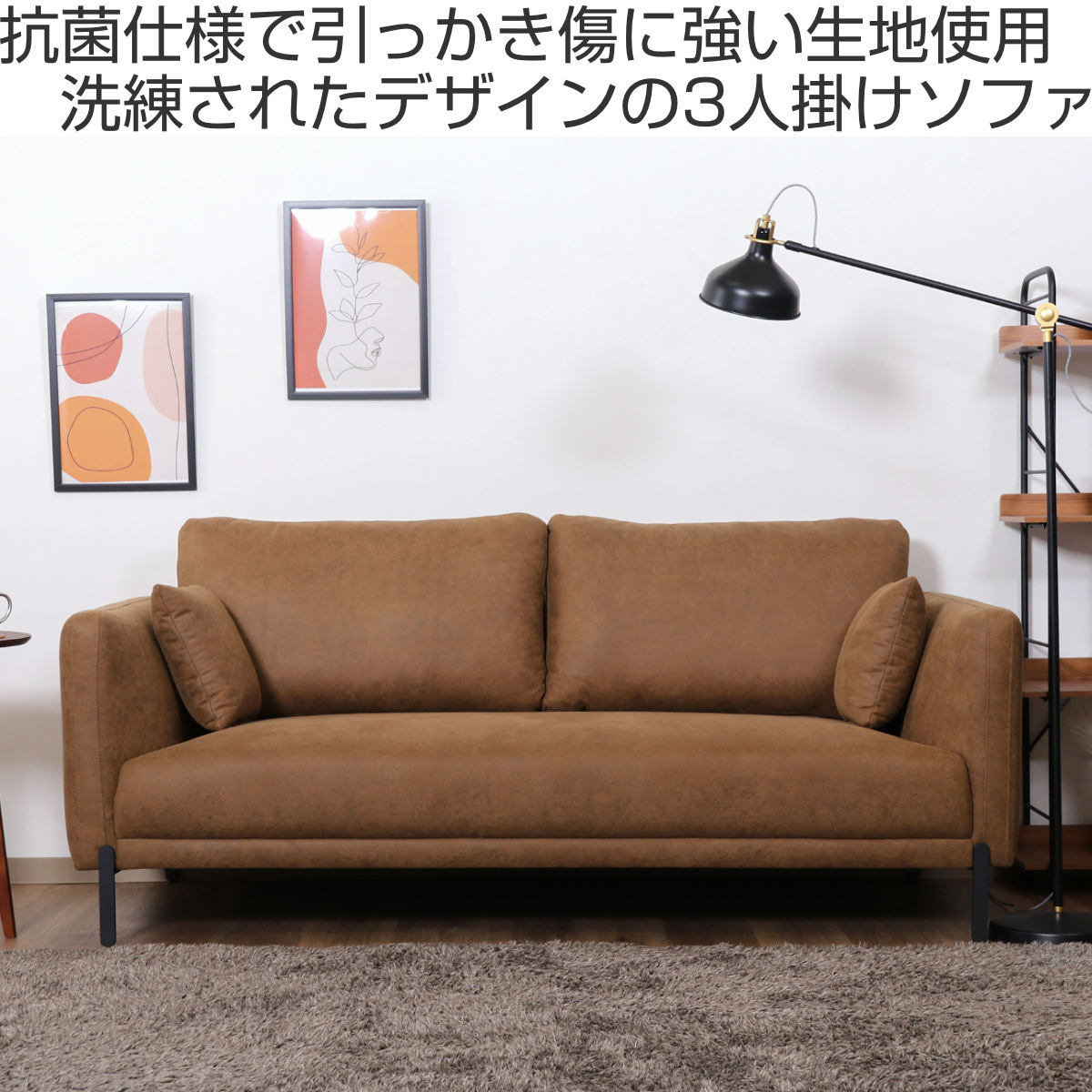 ソファ 幅191cm 3人掛け クリード 抗菌生地仕様 ( ローソファ 脚 取り外し可能 傷に強い ファブリック 布 スクラッチ生地 sofa ソファー 完成品 ) 【ブラウン】